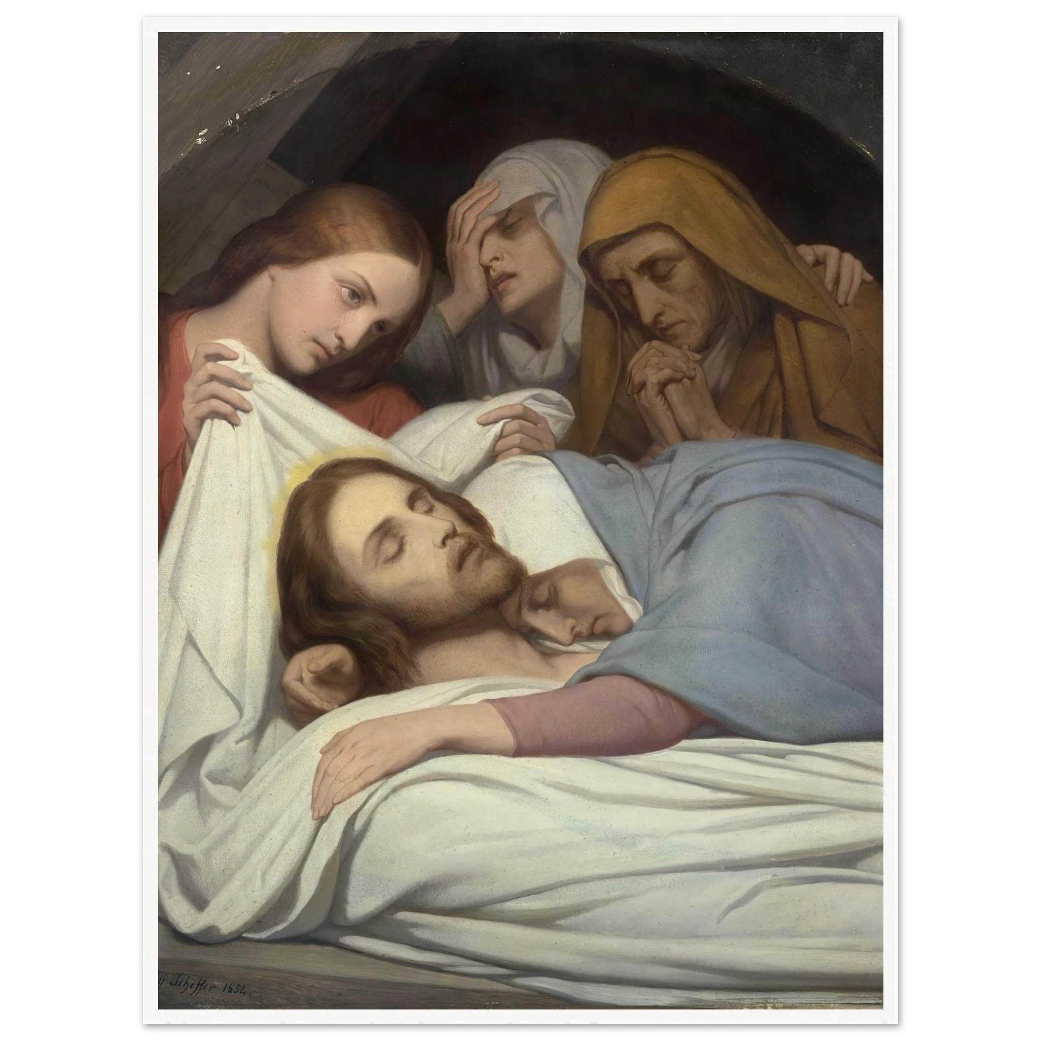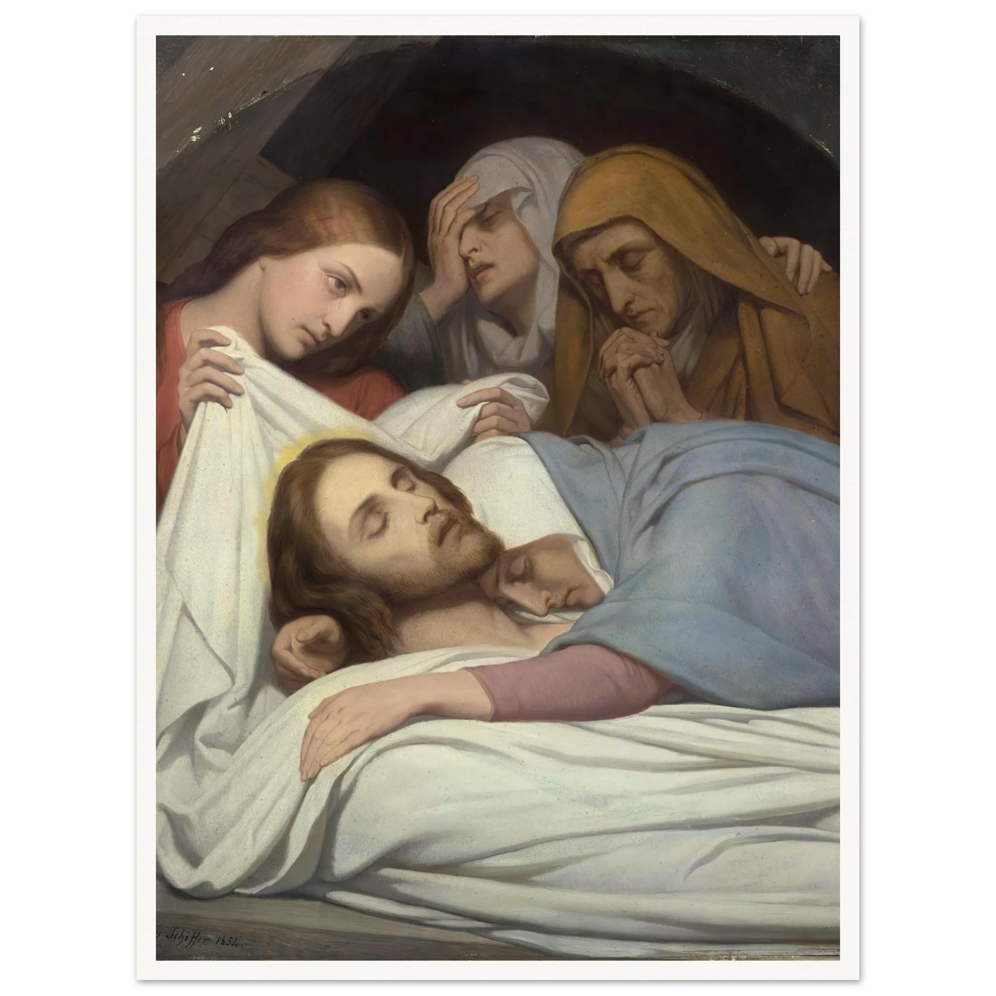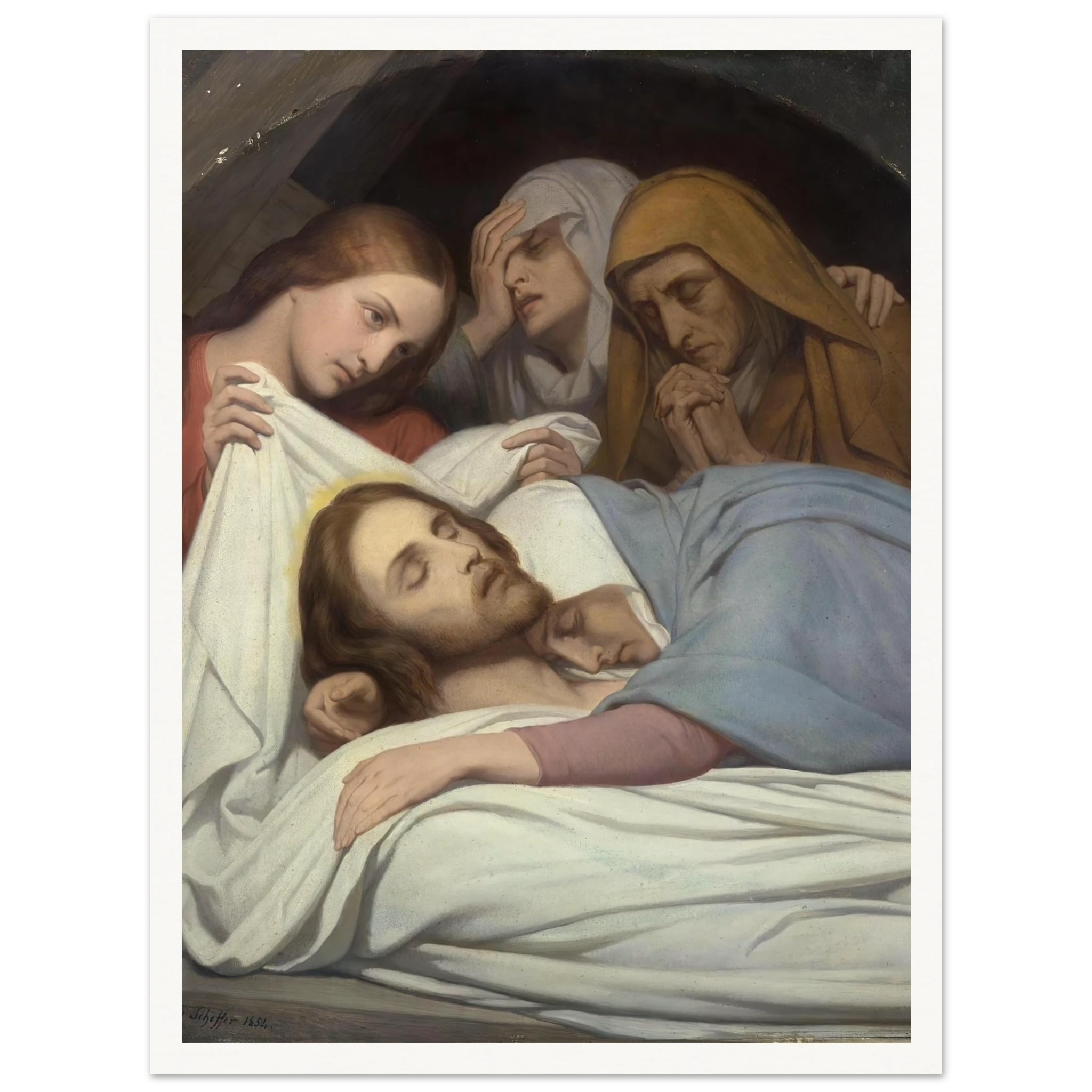 Discover the emotional intensity of "The Entombment", an 1854 masterpiece by Ary Scheffer. Witness the masterful use of color and light, as well as the intricate details that bring this scene to life. This painting is a true testament to Scheffer's artistic talent and is sure to captivate any viewer.