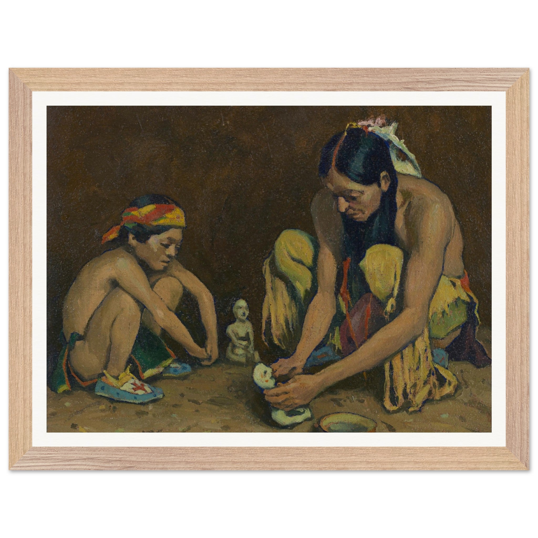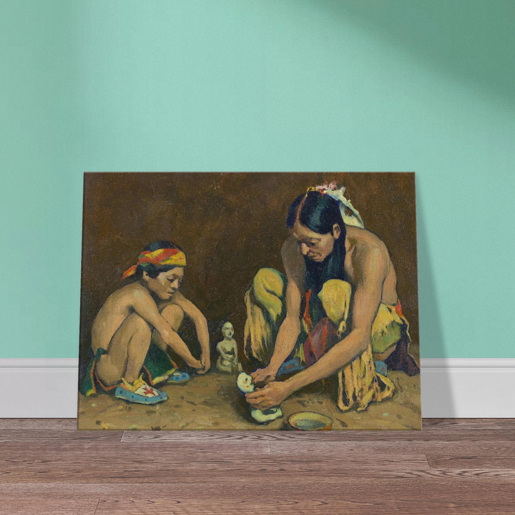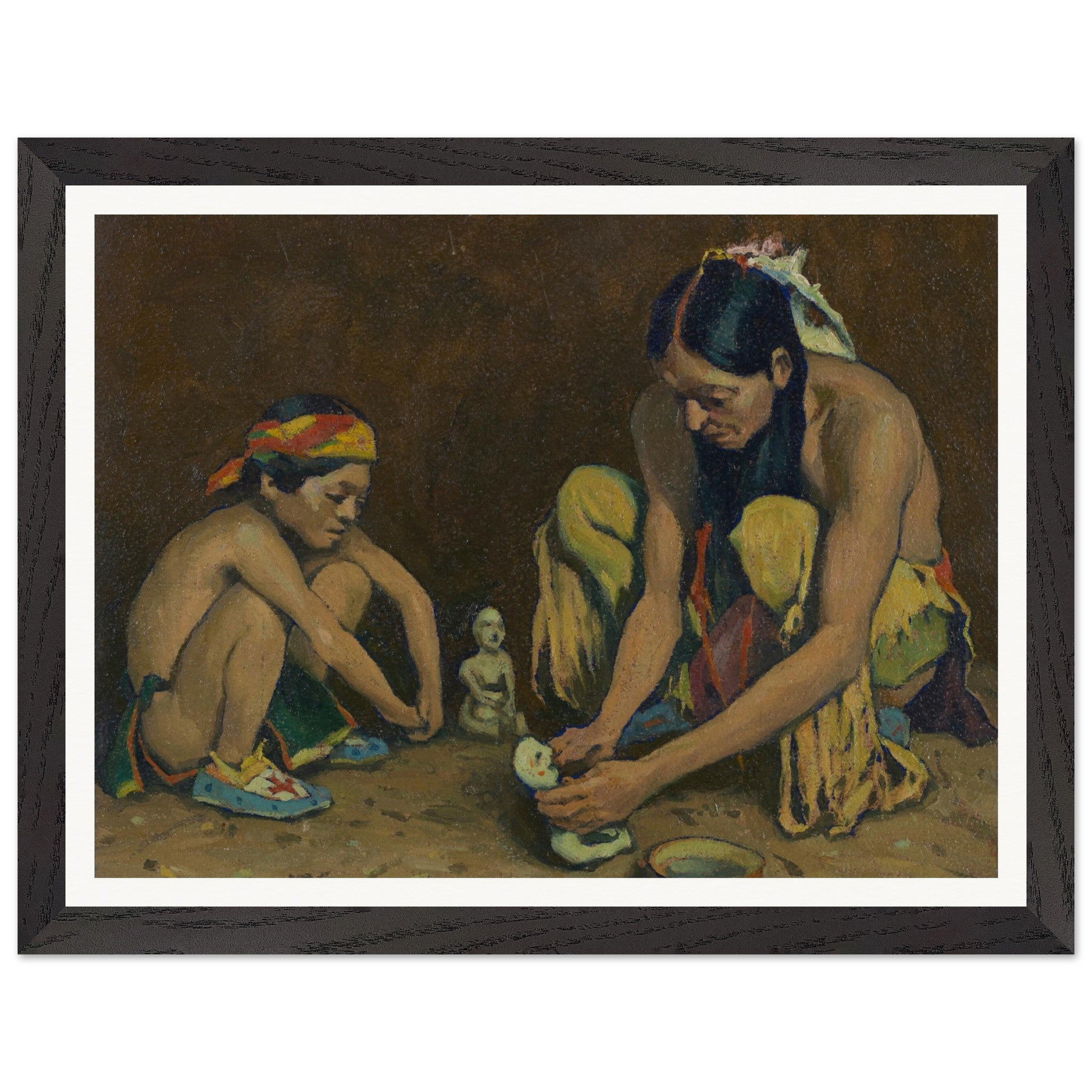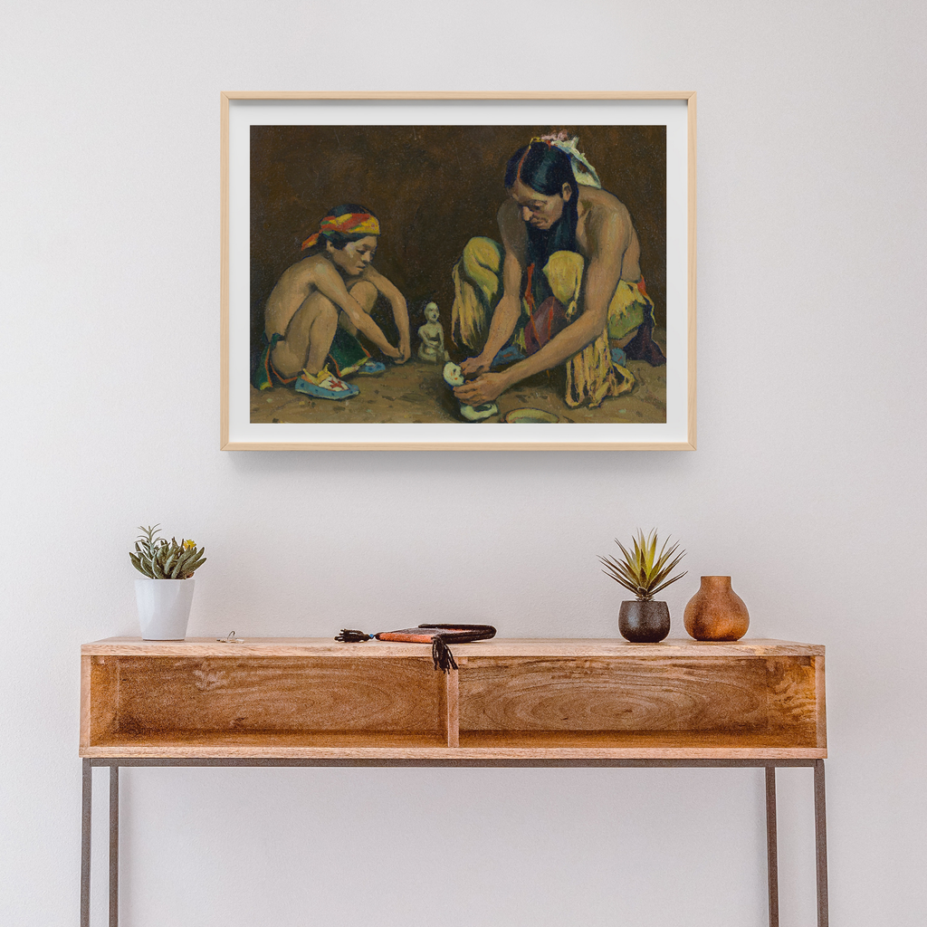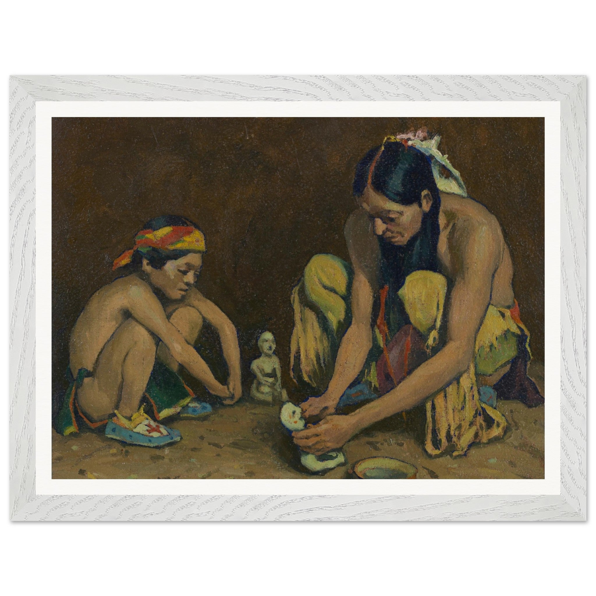 Esta pintura de Eanger Irving Couse, The Rain God Maker, fue creada en 1920 y muestra la maestría del artista para capturar la luz y contar historias a través de la representación de la cultura nativa americana. El uso de colores vibrantes y detalles intrincados sumerge al espectador en el tema, lo que proporciona una experiencia visual única y cautivadora. Una incorporación sorprendente a cualquier colección de arte.