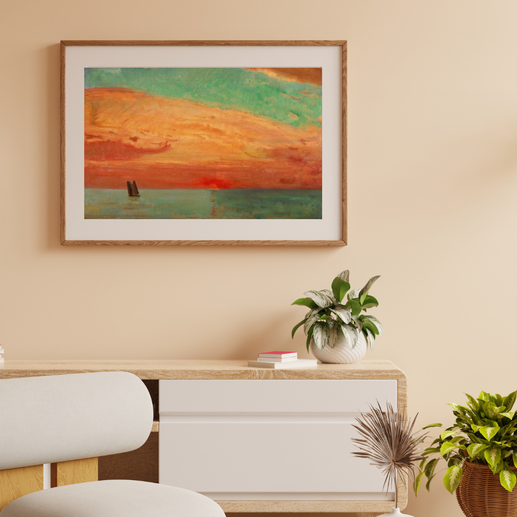 Experimente la impresionante belleza de "Amanecer sobre el mar del Este" de Fujishima Takeji de 1932. Esta impresionante pieza captura la esencia pacífica del amanecer y aporta una sensación de serenidad a cualquier habitación. Con pinceladas expertas y detalles precisos, esta pintura es imprescindible para cualquier coleccionista de arte.
