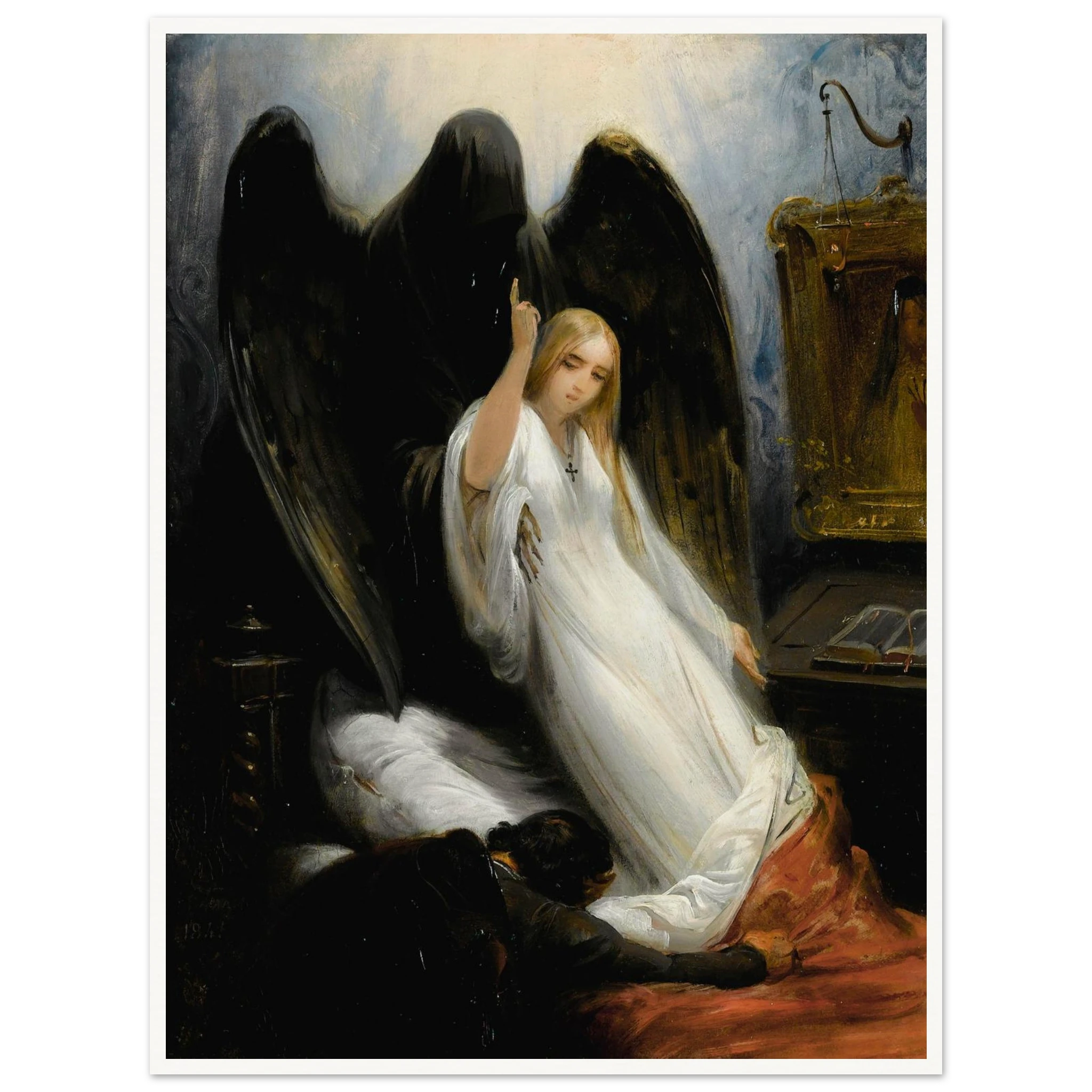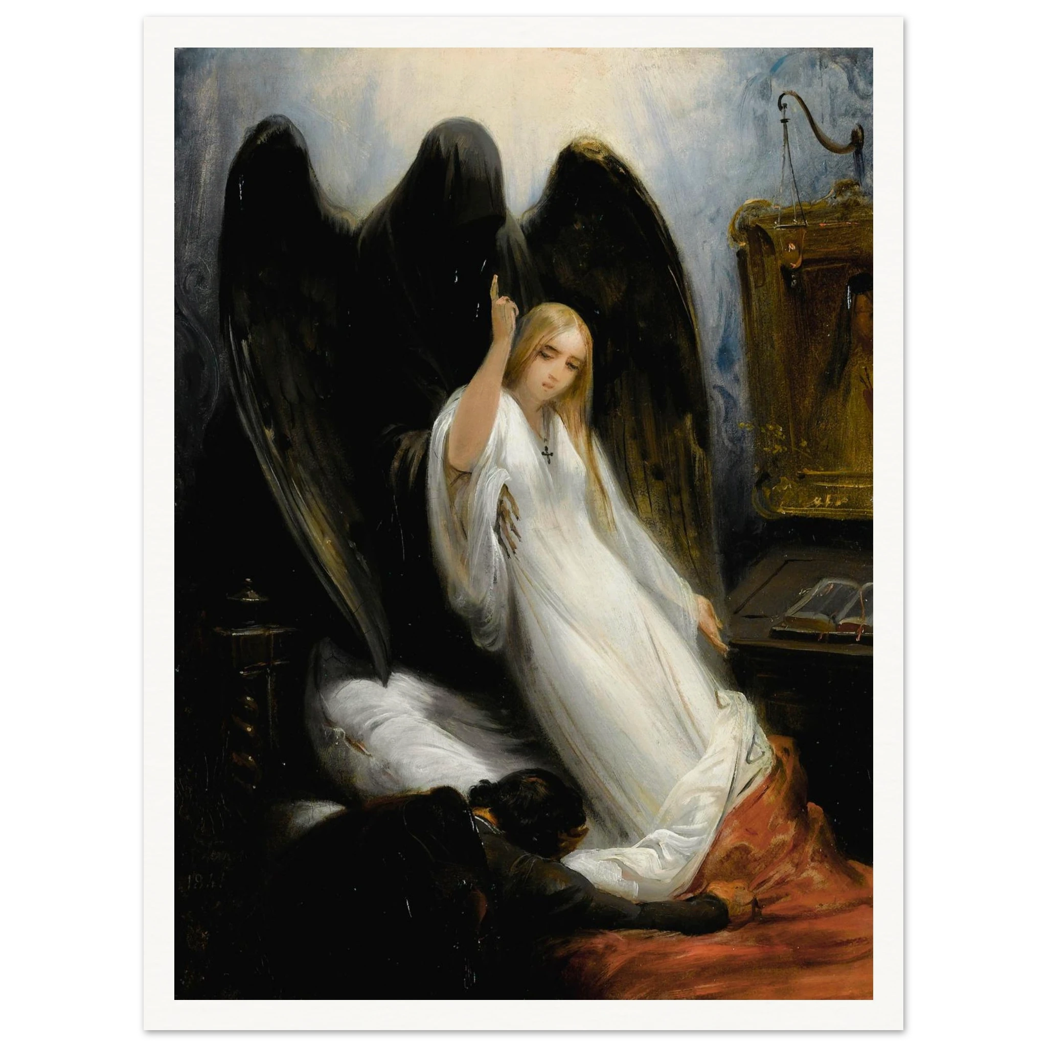 Esta pintura de 1841 de Horace Vernet, titulada La muerte y la doncella, es una representación atemporal del frágil equilibrio entre la vida y la muerte. Vernet capta con maestría la tensión y el dolor de esta escena, invitando al espectador a contemplar la condición humana. Esta obra maestra del arte histórico es imprescindible para cualquier entusiasta del arte.