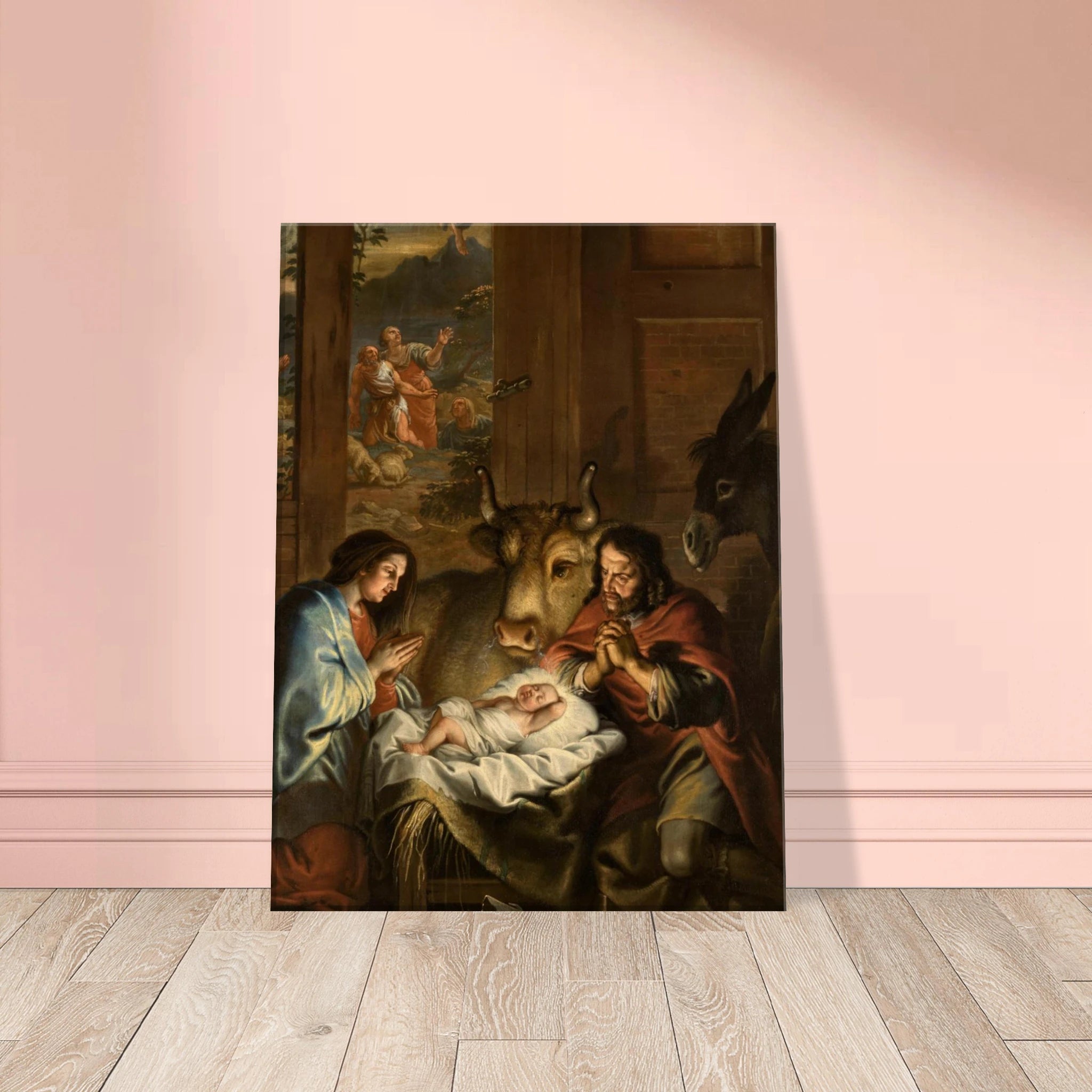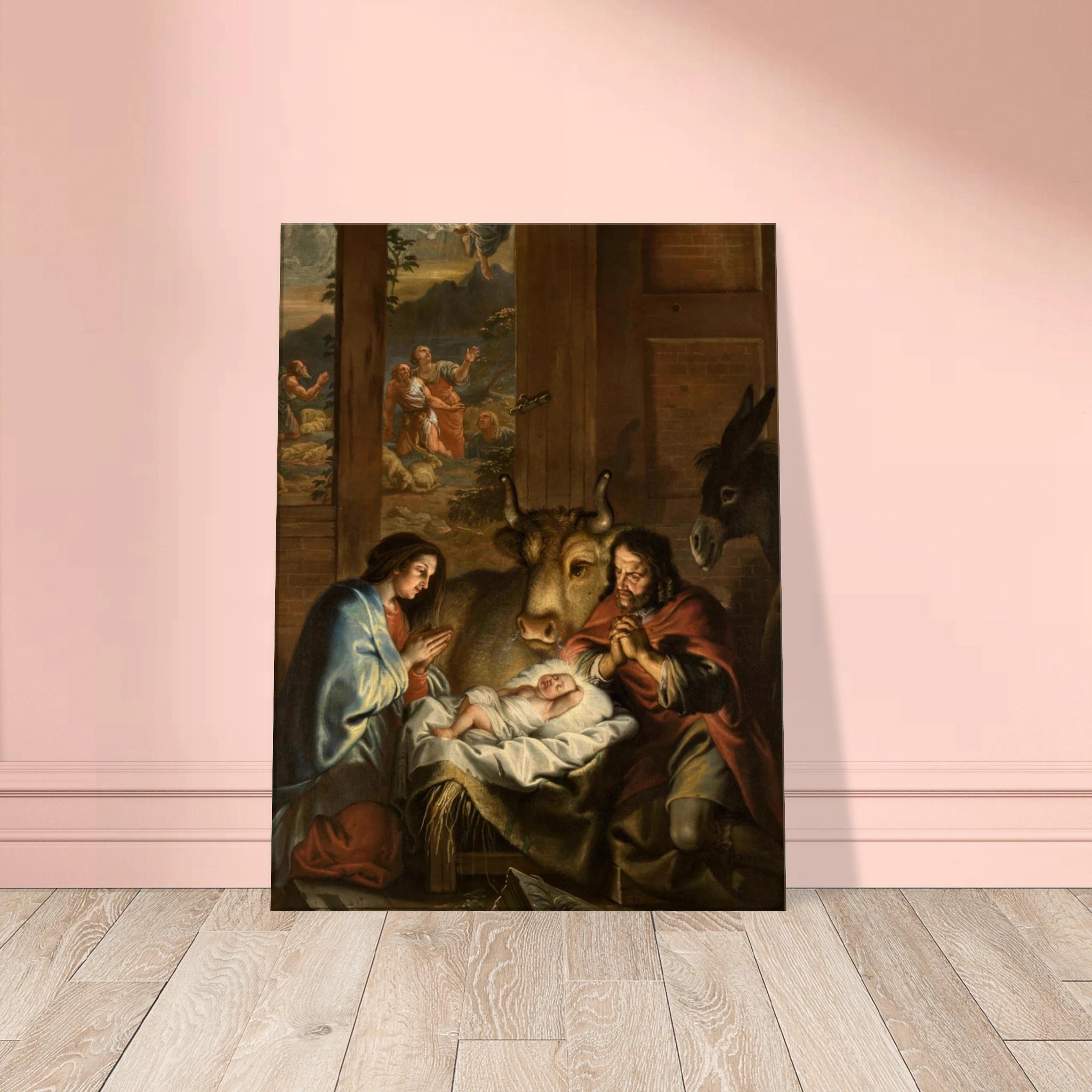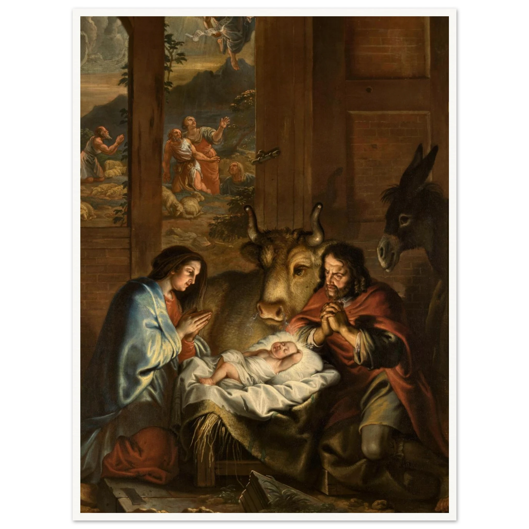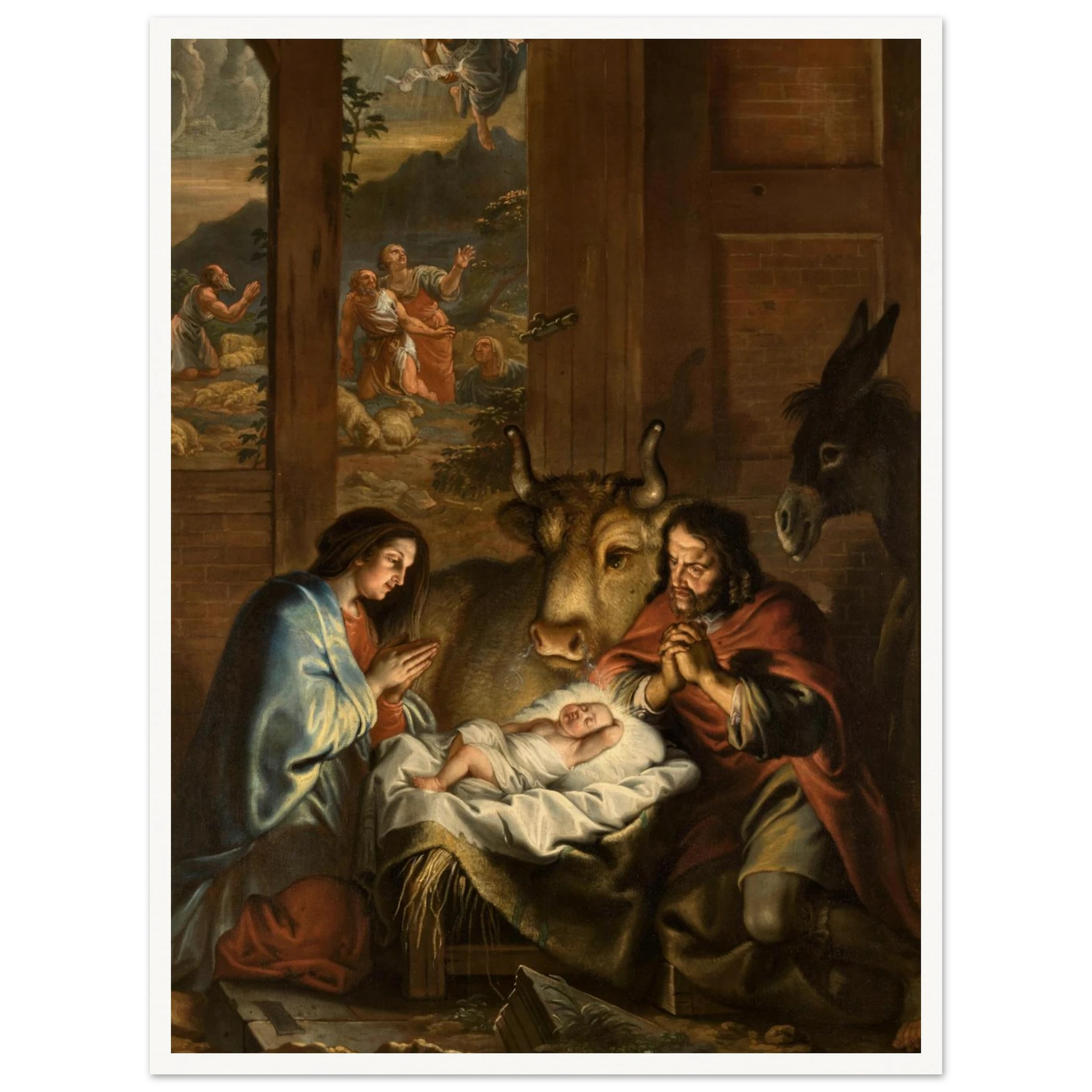 Esta pintura al óleo, creada por el artista flamenco Jan Erasmus Quellinus en 1689, representa la escena de la Natividad con asombrosos detalles. Con pinceladas expertas y un uso preciso del color, Quellinus captura la maravilla y la belleza de este adorado evento bíblico. Adquiera un pedazo de historia con esta exquisita obra maestra.