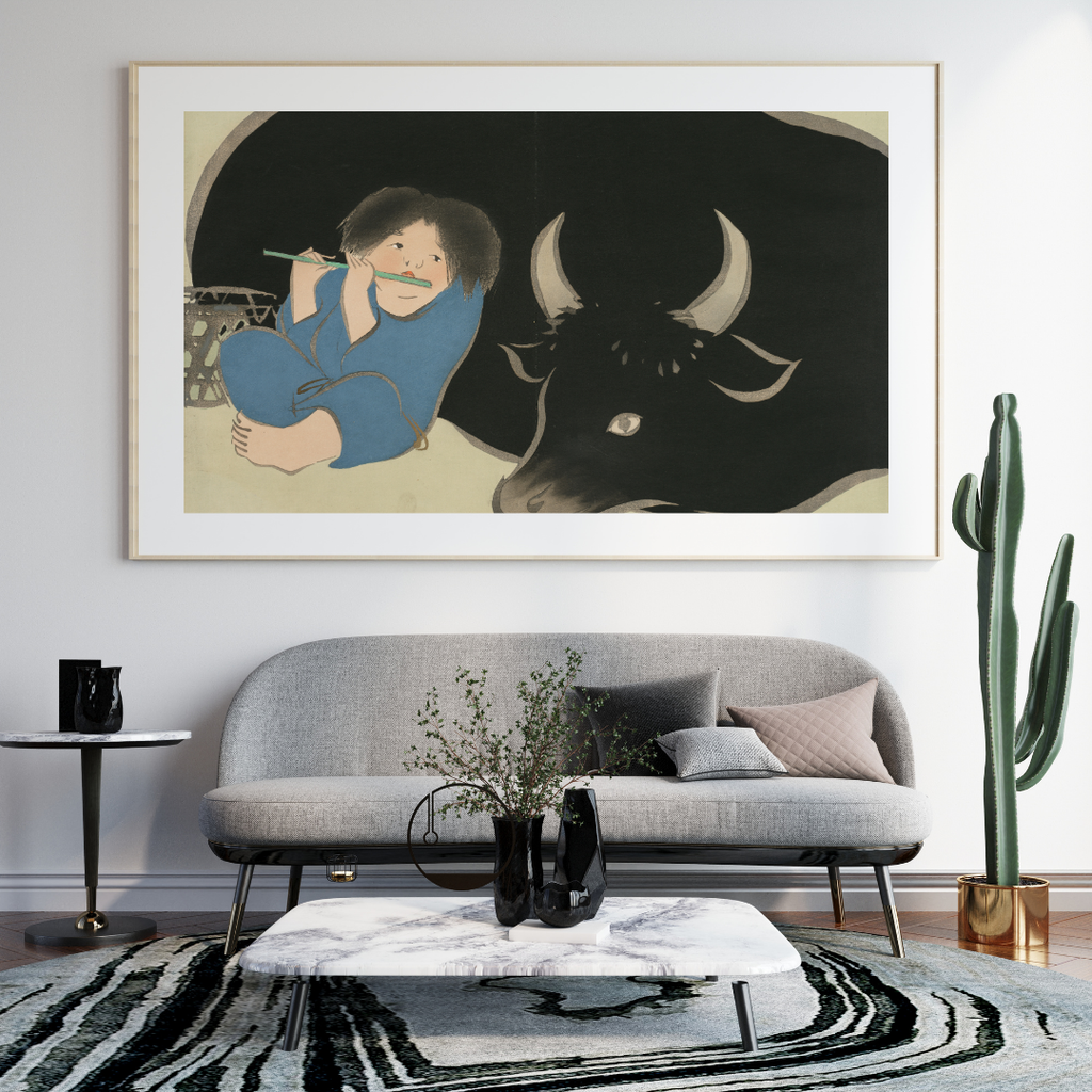 Experimente la impresionante belleza de las xilografías japonesas con "Oxherd, 1909" de Kamisaka Sekka. Esta exquisita pieza muestra el intrincado trazo y los colores vibrantes del arte japonés tradicional. Perfecta para cualquier amante del arte o coleccionista.