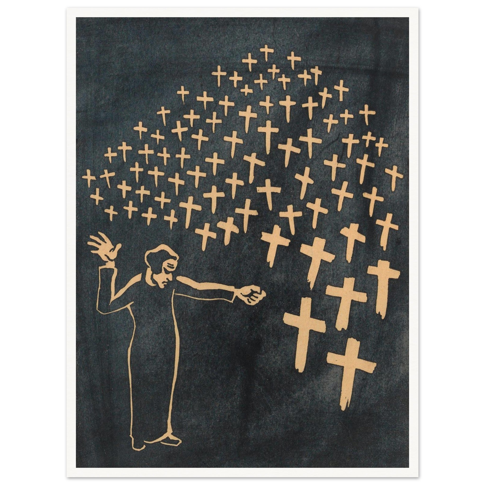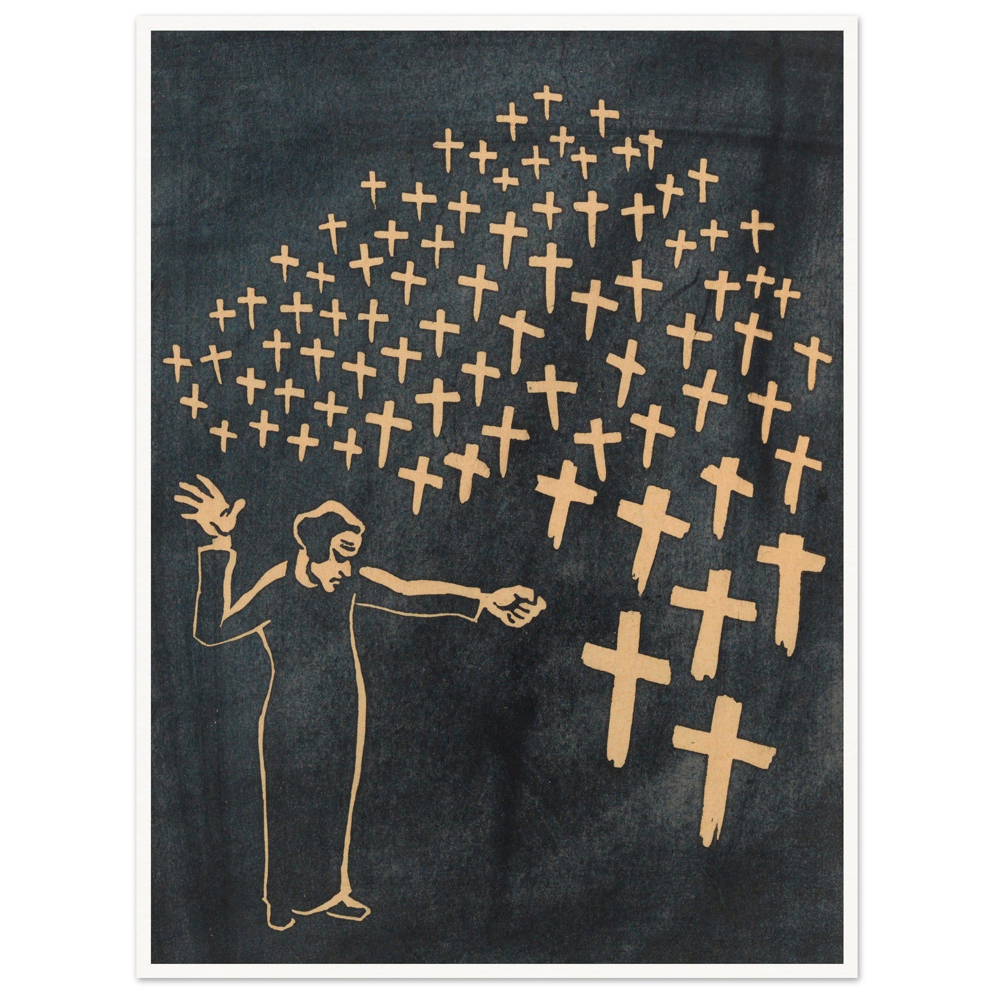 Descubra el poderoso mensaje contra la guerra de la impresión artística "Nie wieder Krieg! 1928" de Karl Wiener. Con imágenes audaces y un simbolismo que invita a la reflexión, esta impresión sirve como recordatorio de las devastadoras consecuencias de la guerra. Agregue esta pieza histórica a su colección y haga una declaración contra la violencia.