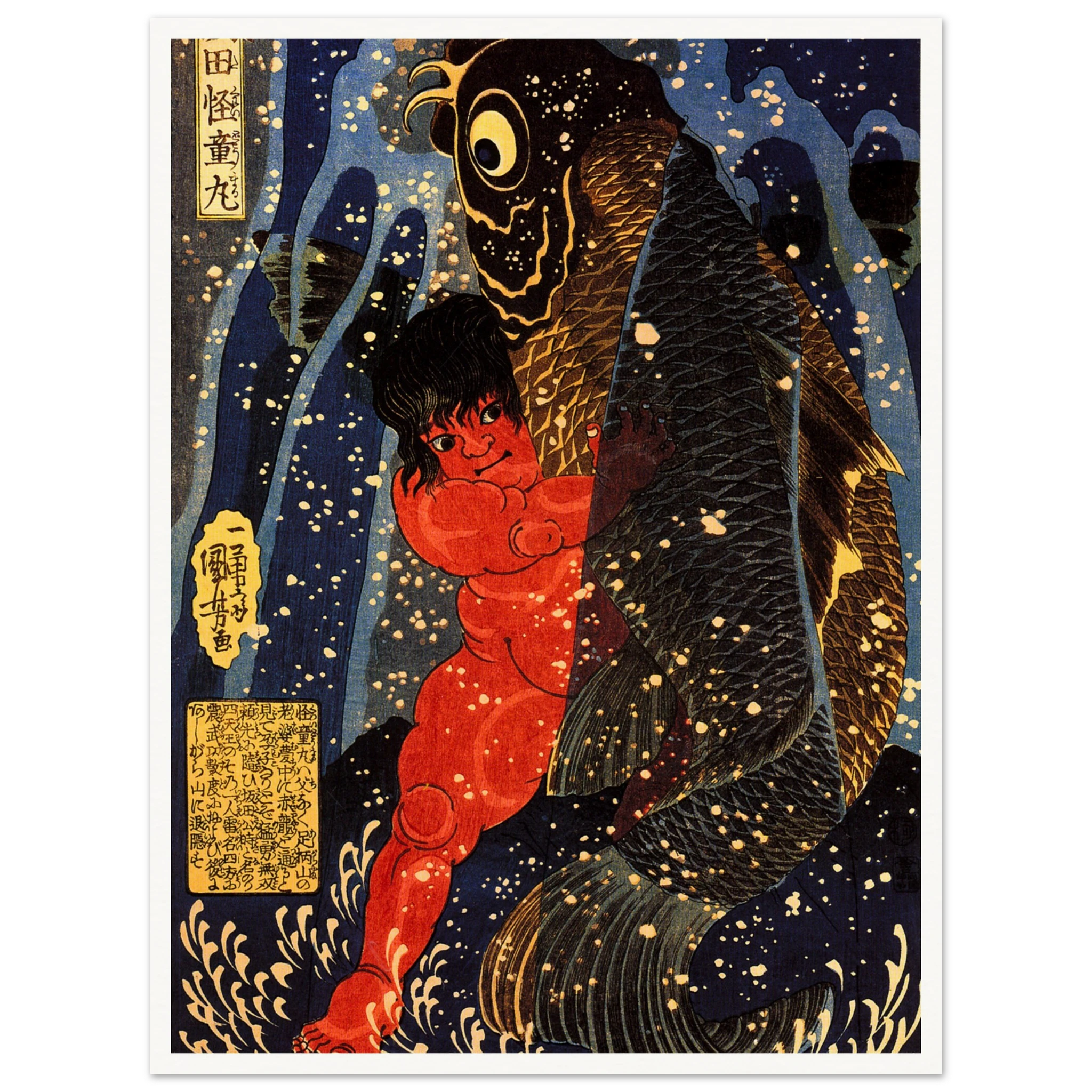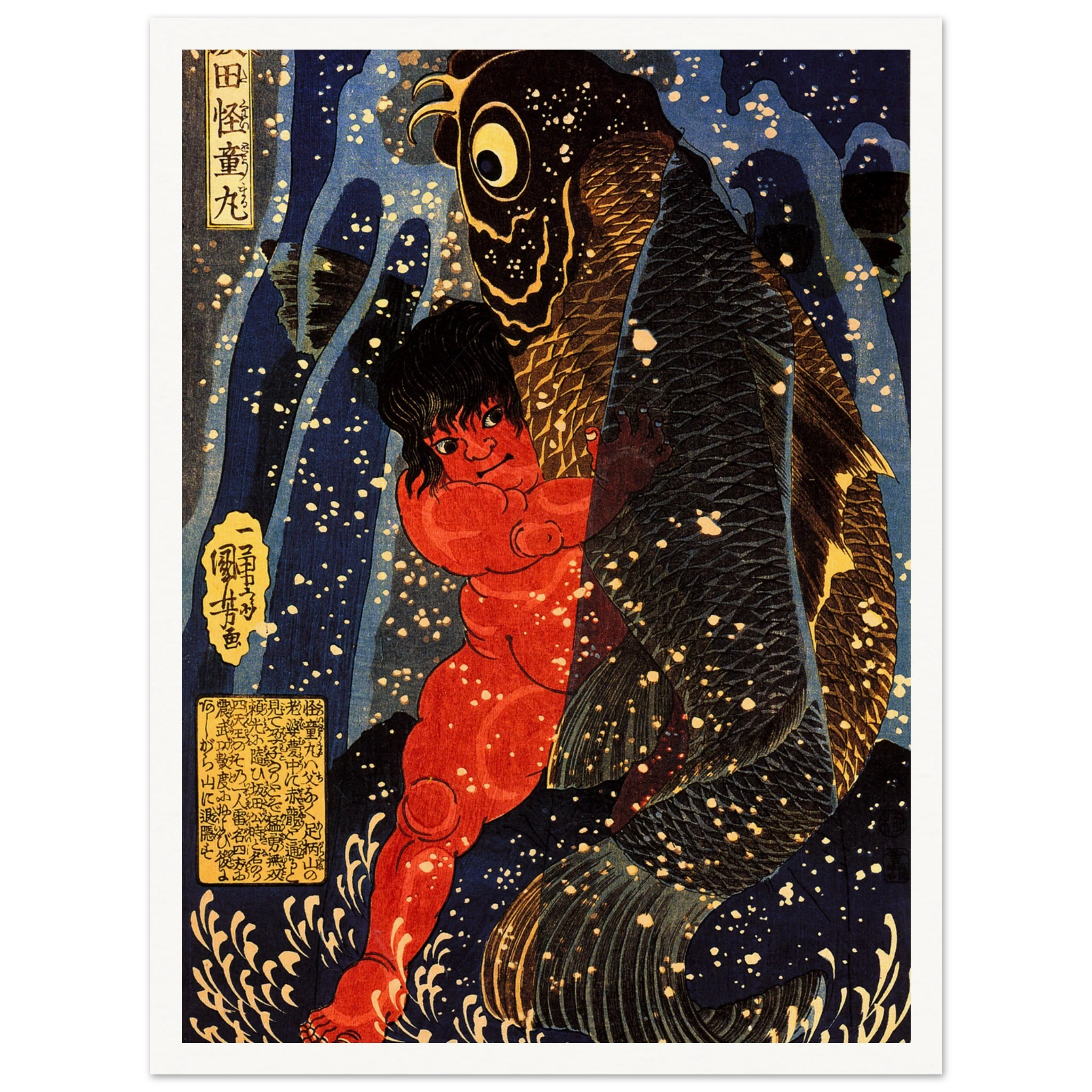 Experimente la energía dinámica y la fuerza de la obra maestra de Utagawa Kuniyoshi: Sakata Kintoki luchando con una carpa enorme en una cascada. Sea testigo de la batalla épica entre el hombre y el pez, capturada en esta xilografía de 1836. Imprescindible para cualquier coleccionista de arte o amante de la cultura japonesa.