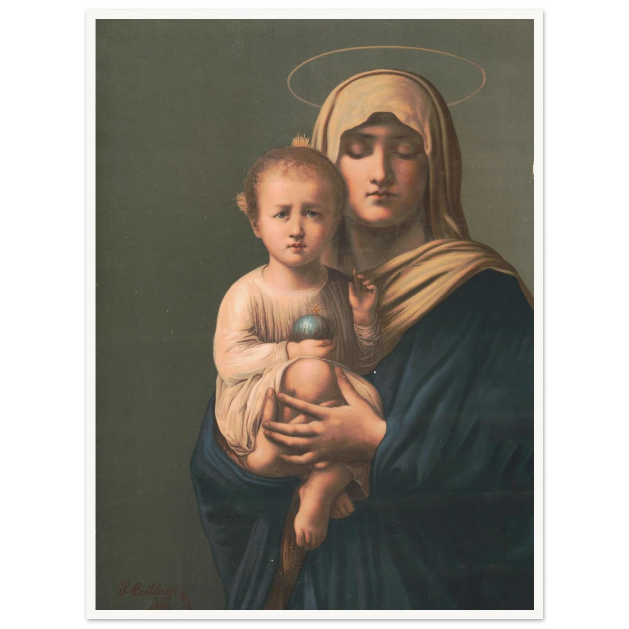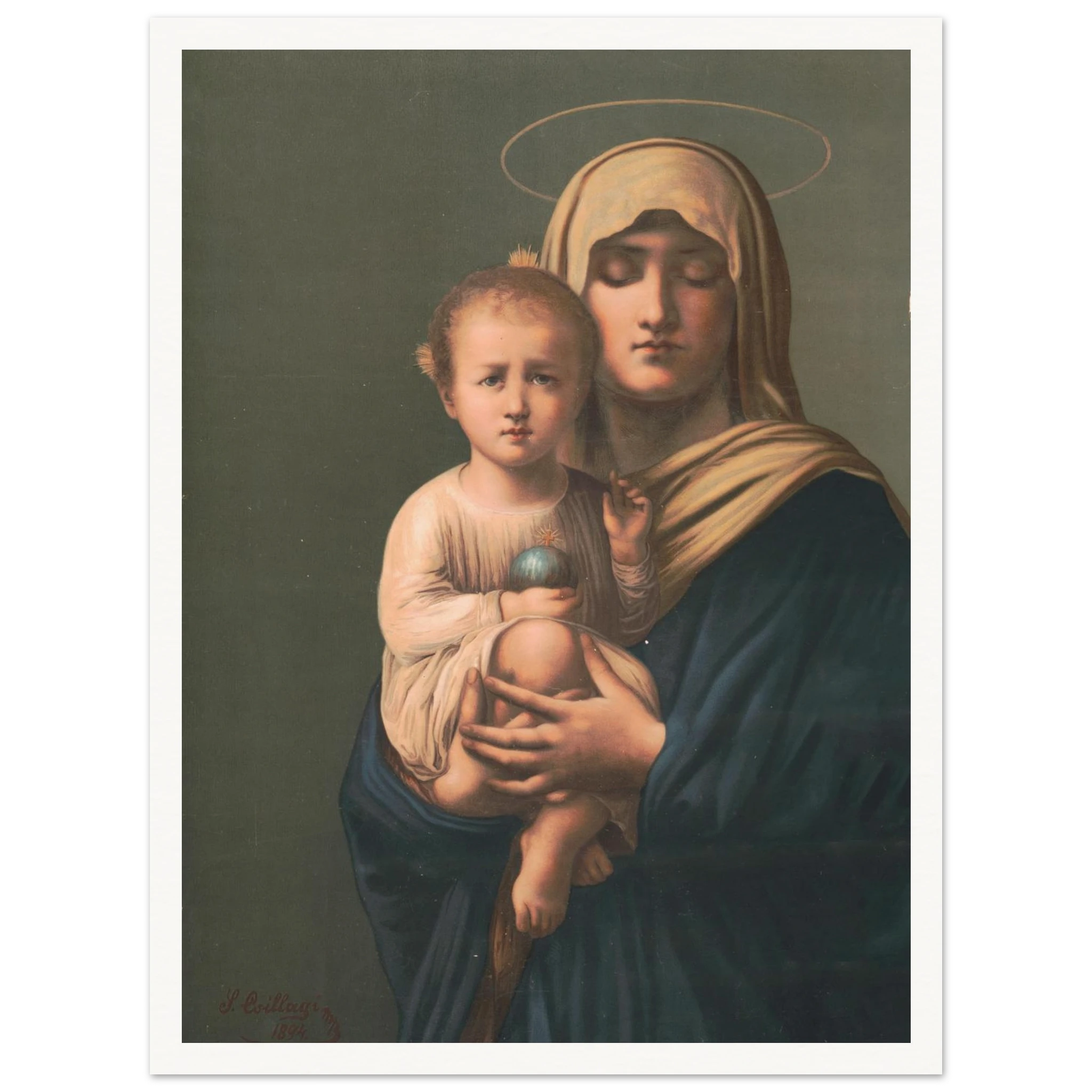 This L. Coillagi, Madonna and Jesus holding the world, 1894 art print is a beautiful addition to any art collection. Featuring intricate details and vibrant colors, this piece showcases the artist's mastery of the medium. A timeless and classic representation of Madonna and Jesus, this print is a must-have for art enthusiasts and collectors alike.