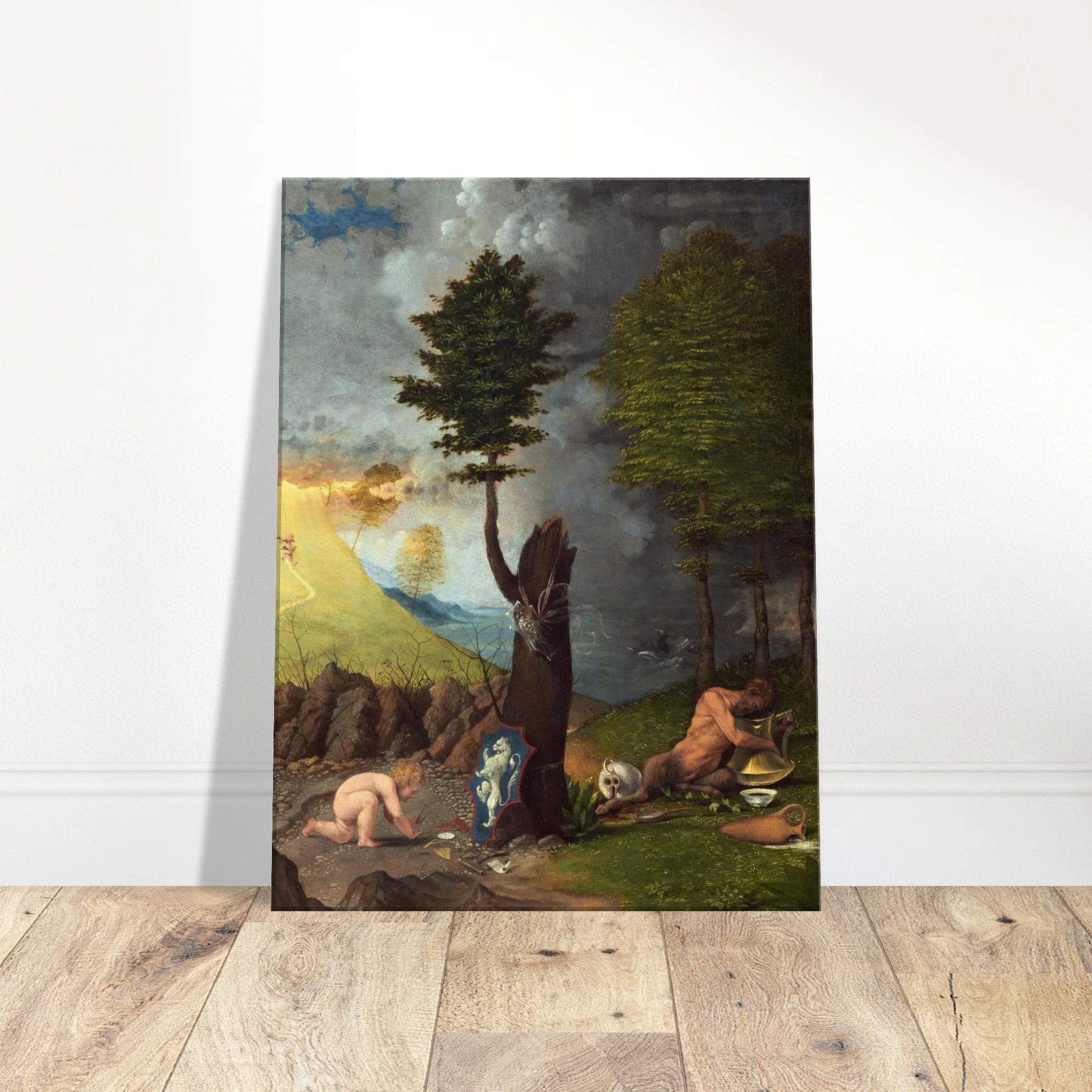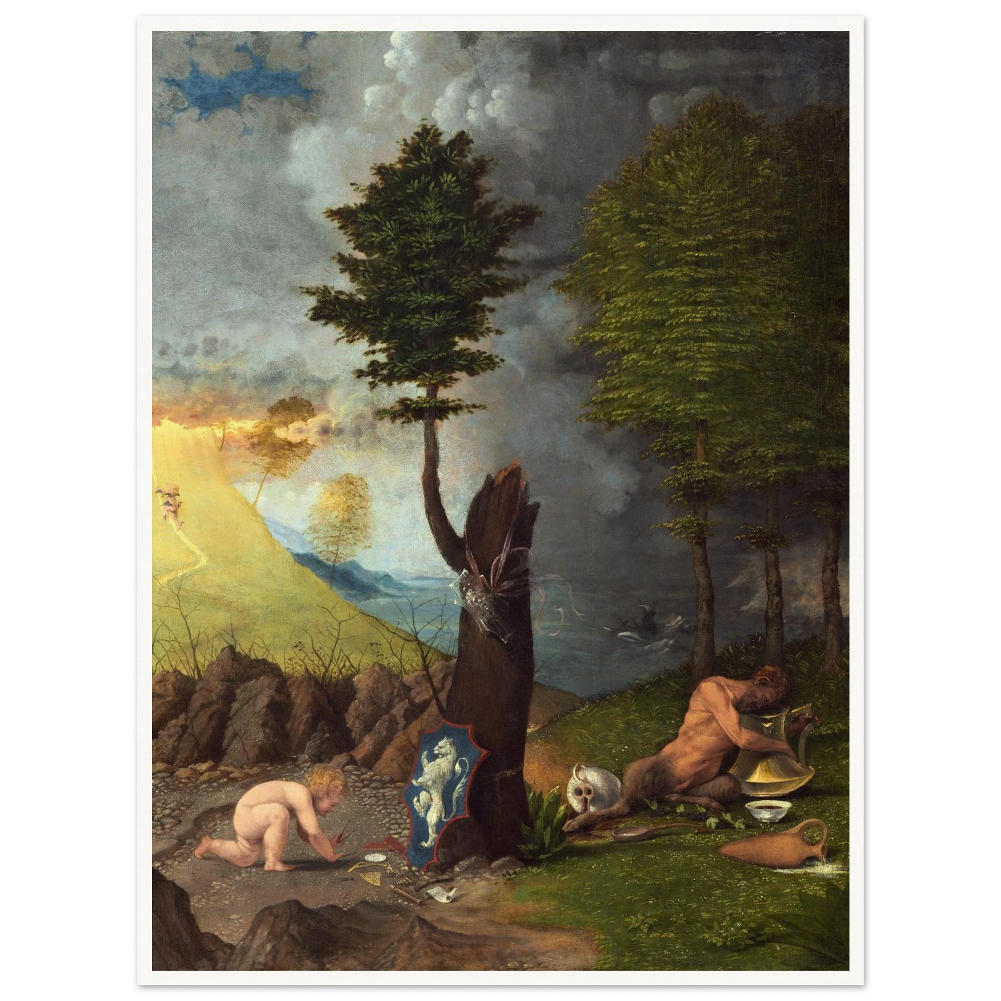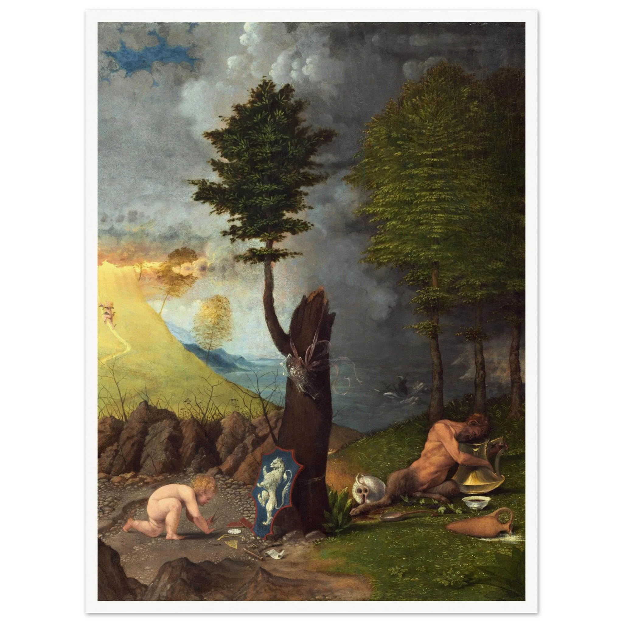 Esta obra maestra de 1505 de Lorenzo Lotto representa una alegoría de la virtud y el vicio, mostrando su dominio del estilo renacentista. A través de detalles intrincados e imágenes simbólicas, la pintura ilustra la lucha eterna entre el bien y el mal. Sumérgete en la cautivadora narrativa de esta icónica obra de arte.