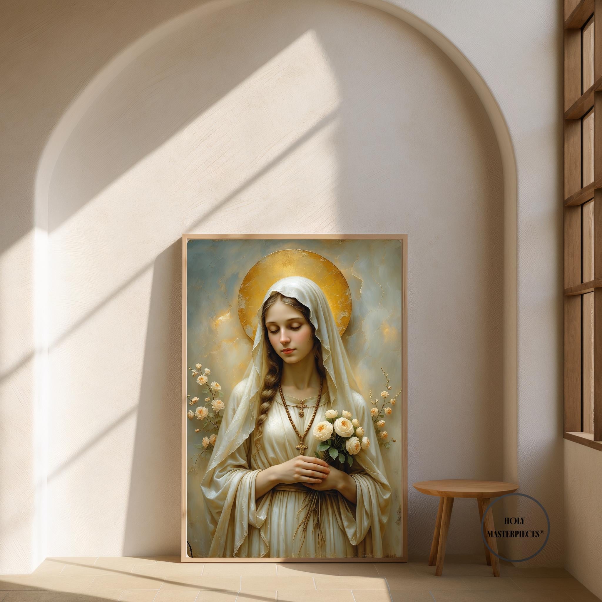 🌟 MADONNA WITH FLOWERS AND ROSARY — DIGITAL DOWNLOAD