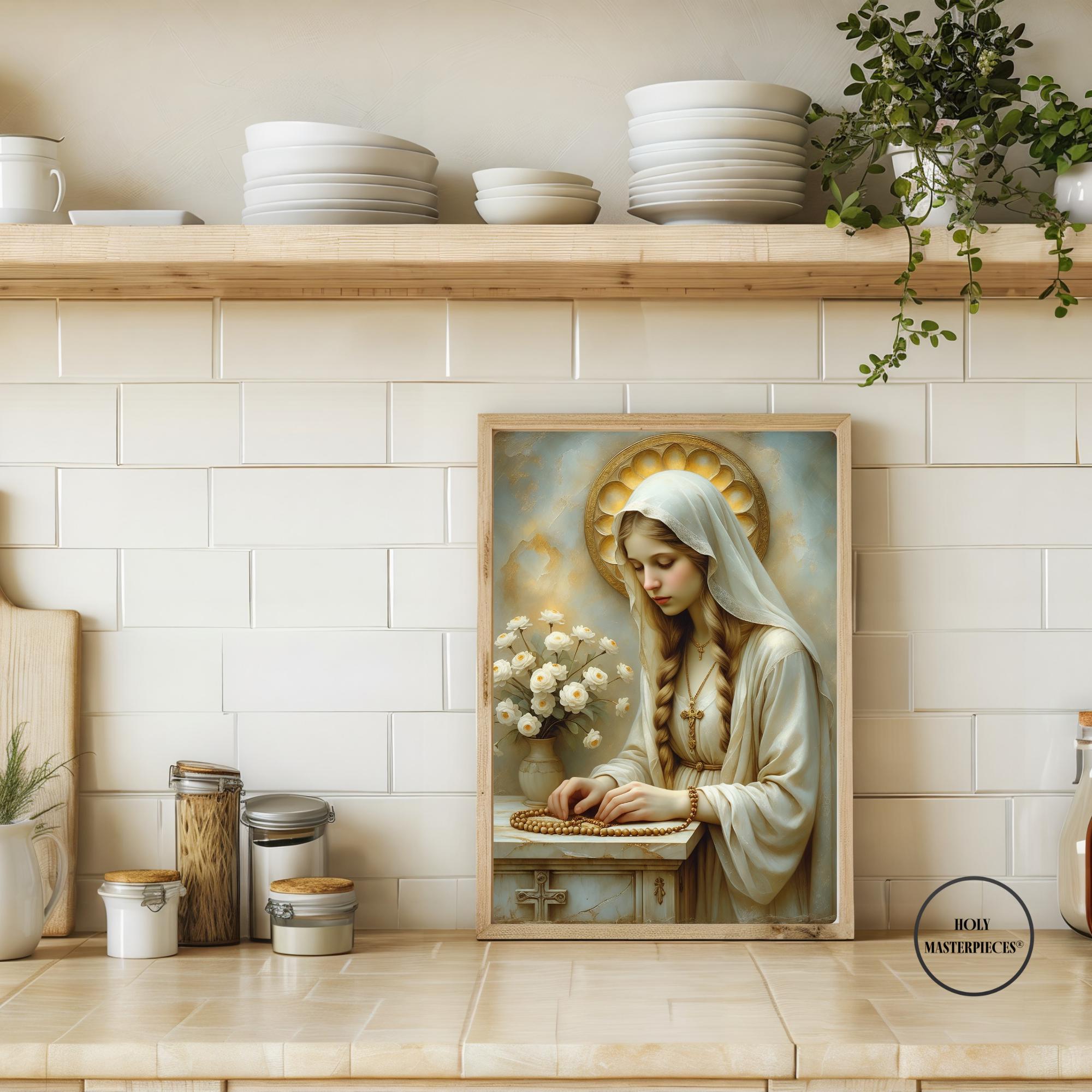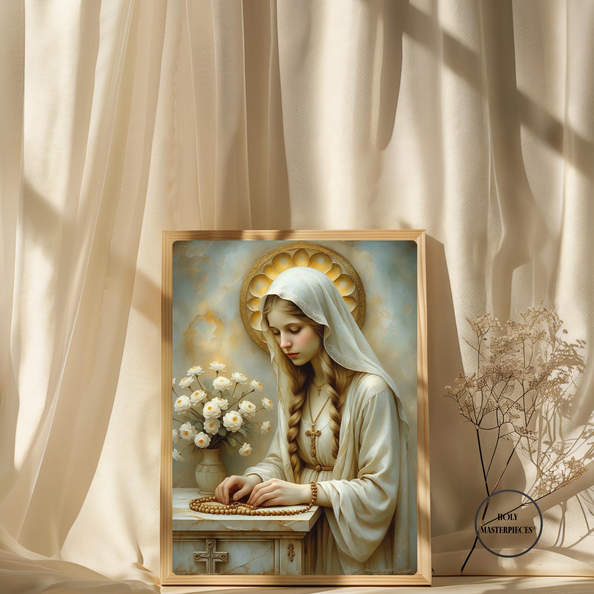Madonna with Rosary and Altar - Christian Art Digital Download