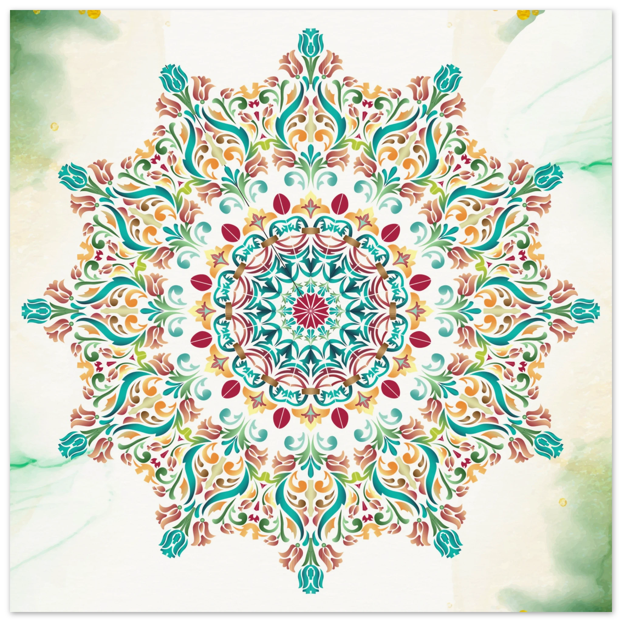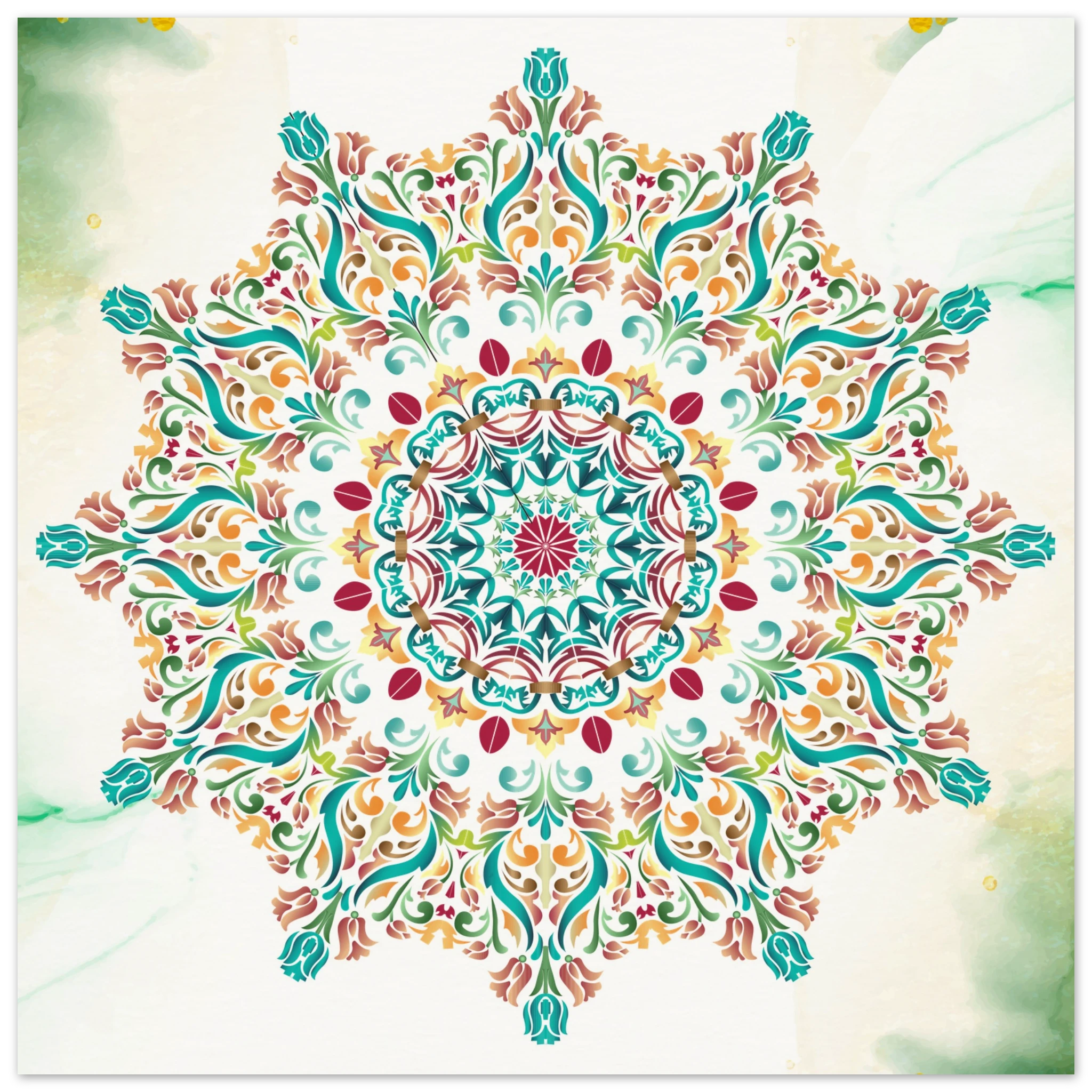 This stunning piece of Summer Burst Mandala Wall Art is a must-have for any modern home. The intricate design and vibrant colors will add a touch of sophistication to any room. Crafted with the finest materials, this wall art is sure to make a statement and elevate the aesthetic of your space.