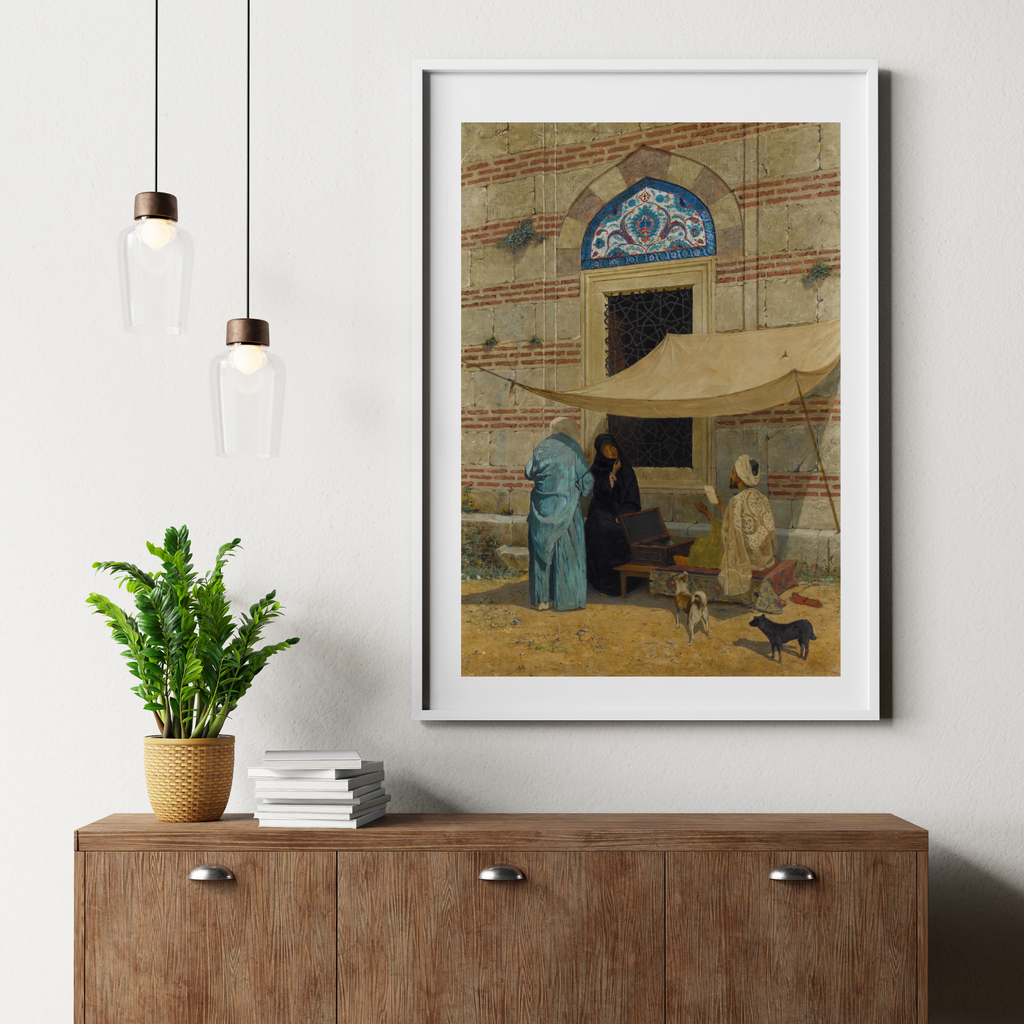Esta pintura de 1910, "Osman Hamdi Bey, escriba público", representa al famoso artista turco en su papel de escriba público, y plasma su experiencia académica y su importancia social. Creada con meticuloso detalle y precisión histórica, esta obra de arte sirve como homenaje a una de las figuras más influyentes de la cultura otomana.