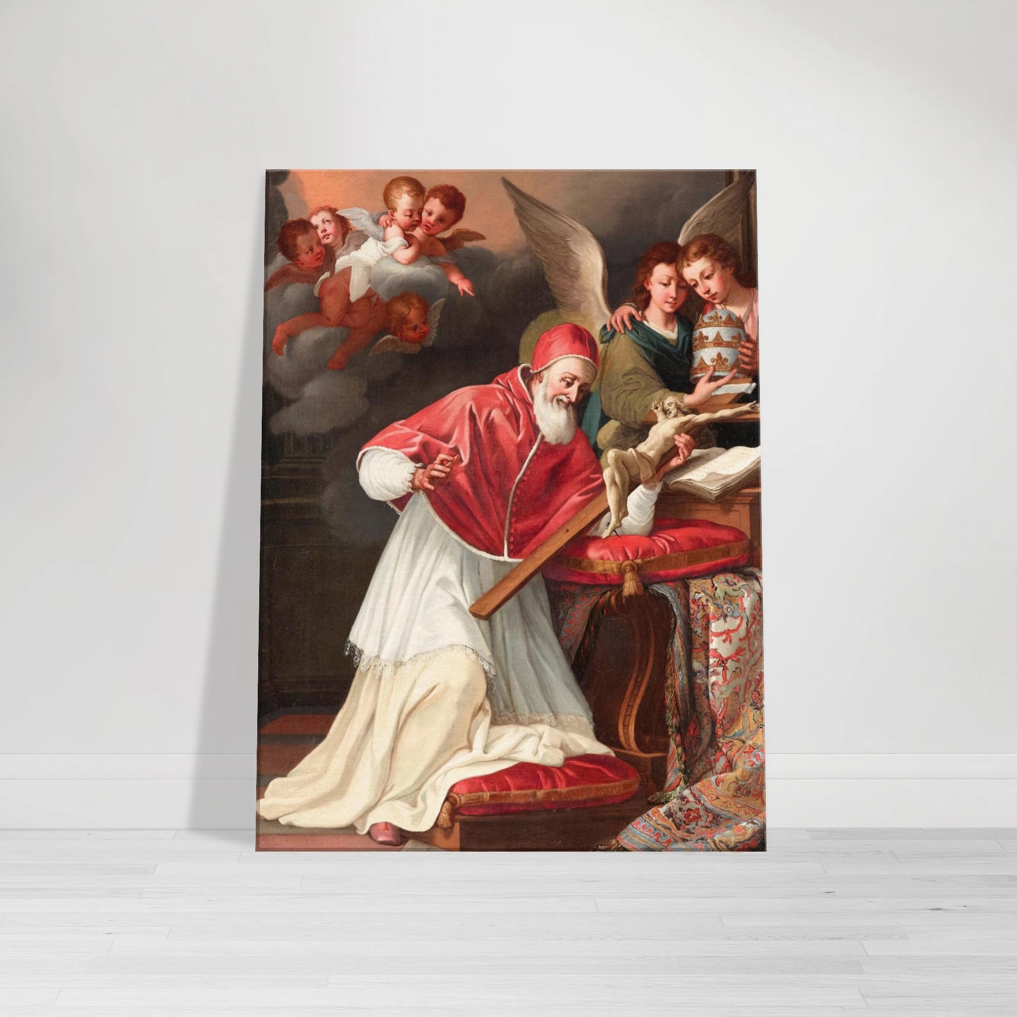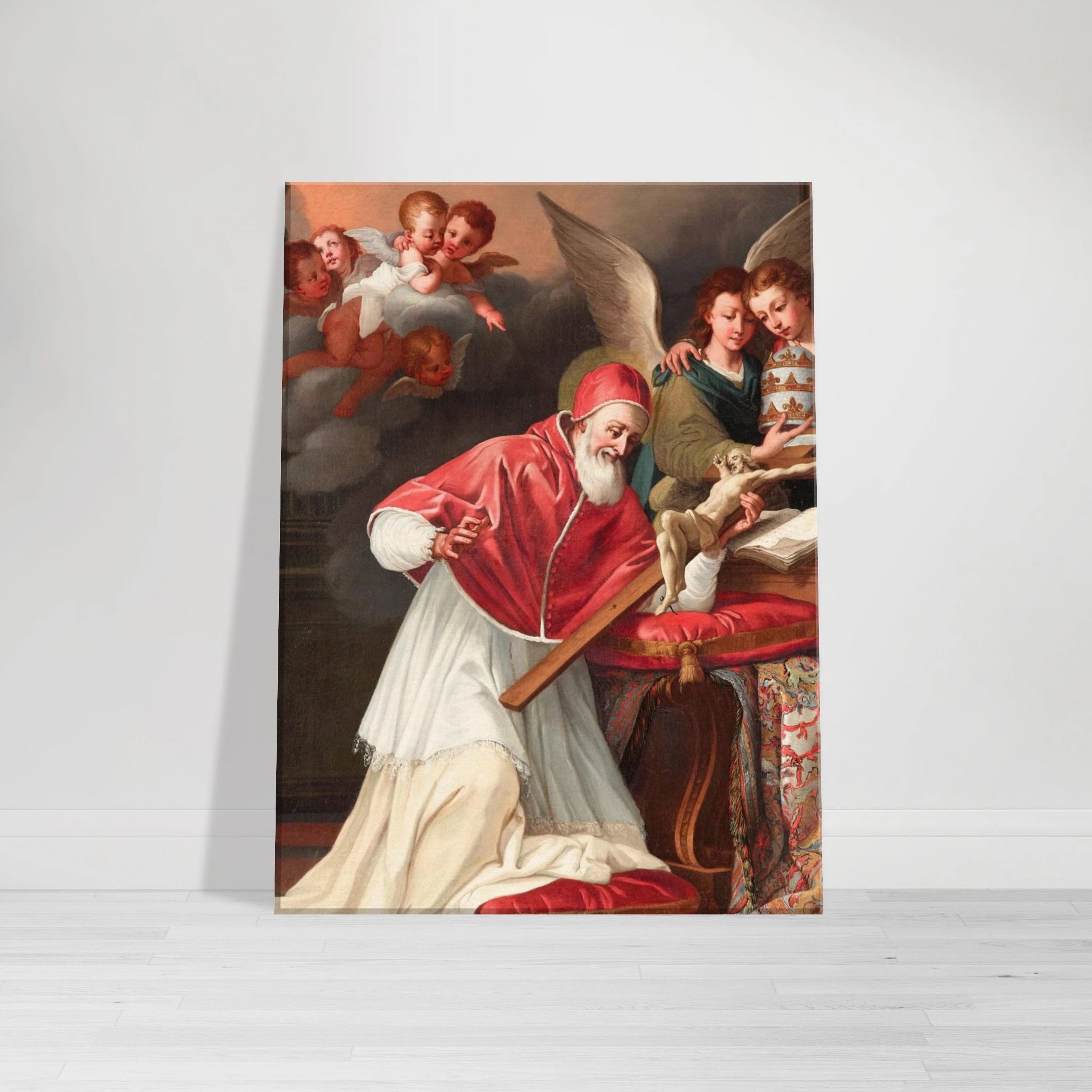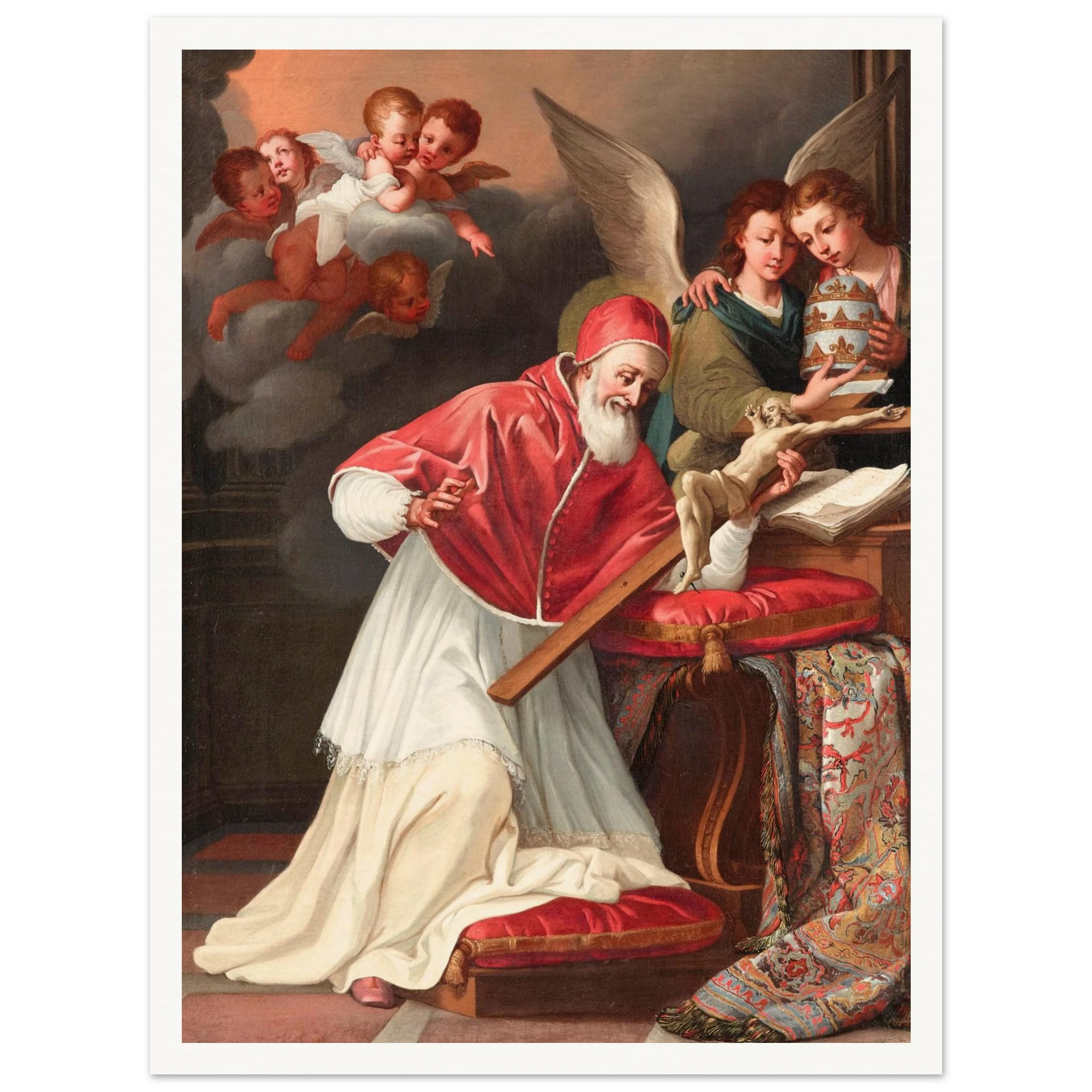 Esta lámina del siglo XVI presenta la representación de San Pío V y el Crucifijo milagroso de la Escuela Romana. Elaborada con maestría y con exquisitos detalles, esta pieza captura la esencia divina y el significado del tema. Agregue un toque de significado histórico y espiritual a su colección con esta lámina de primera calidad.