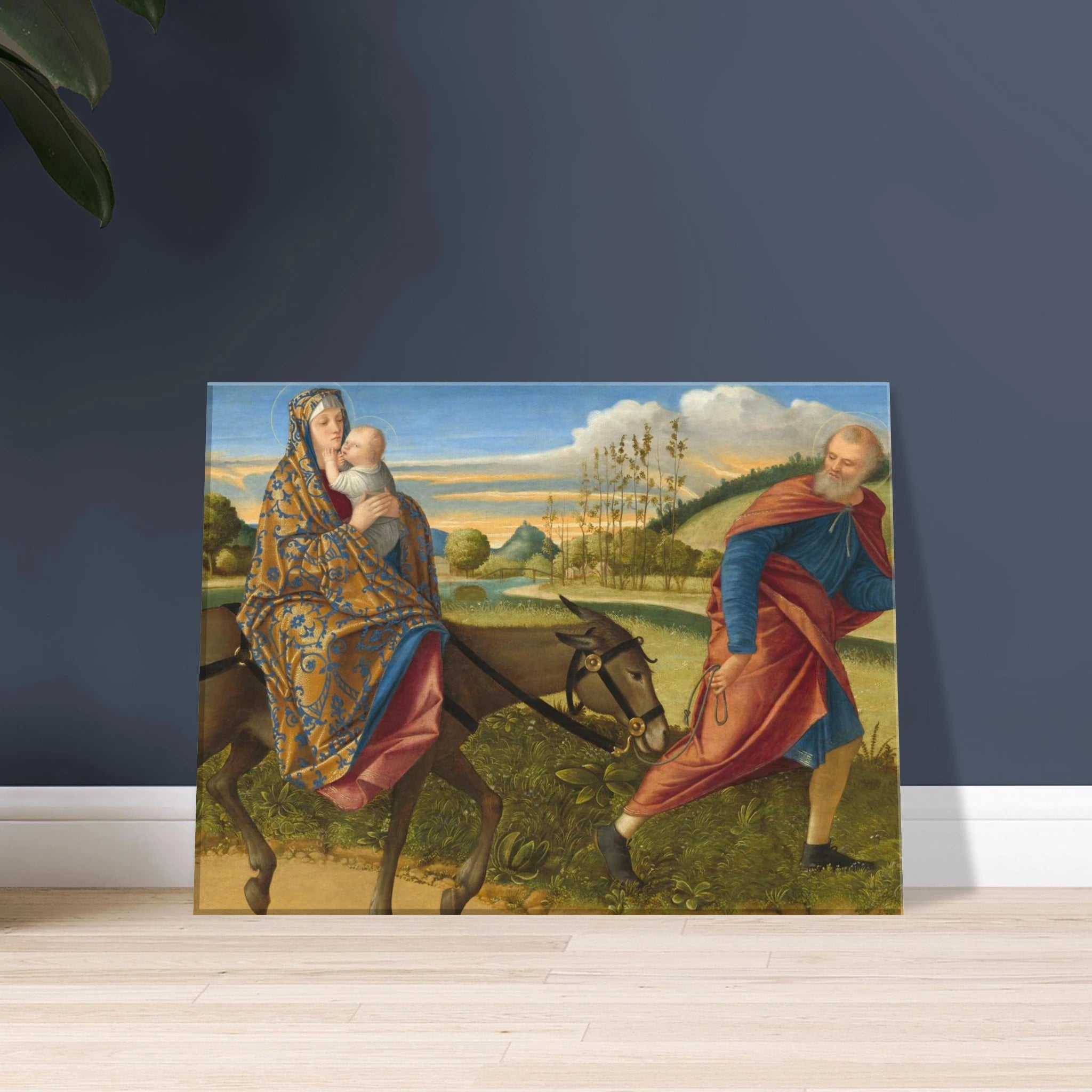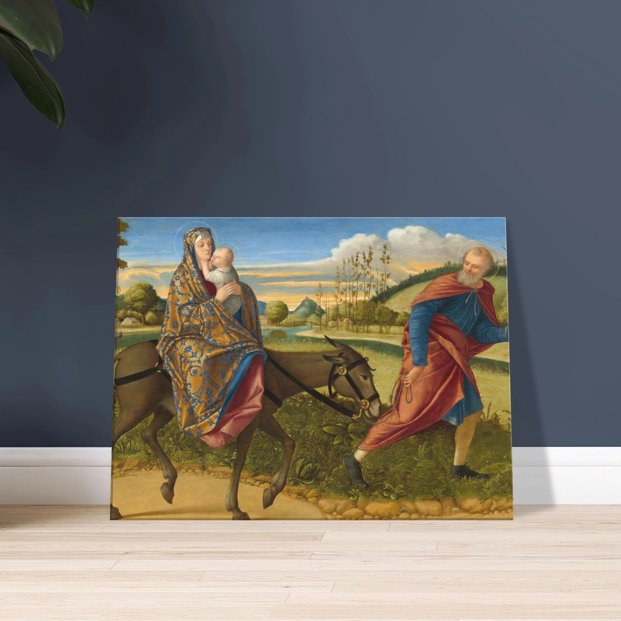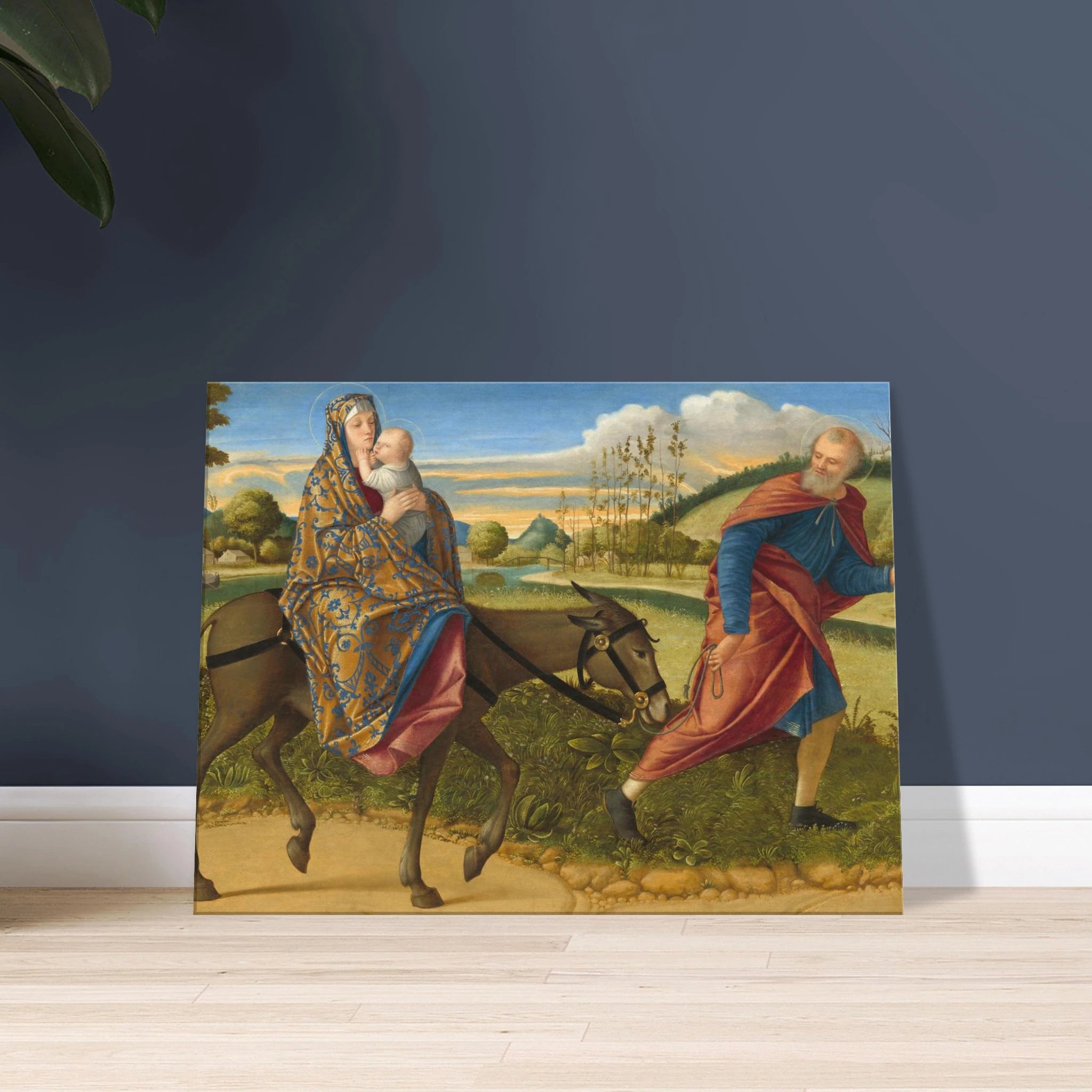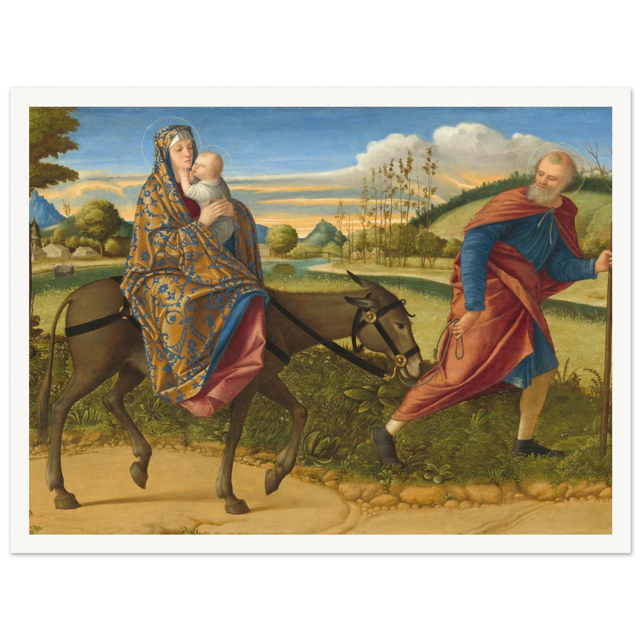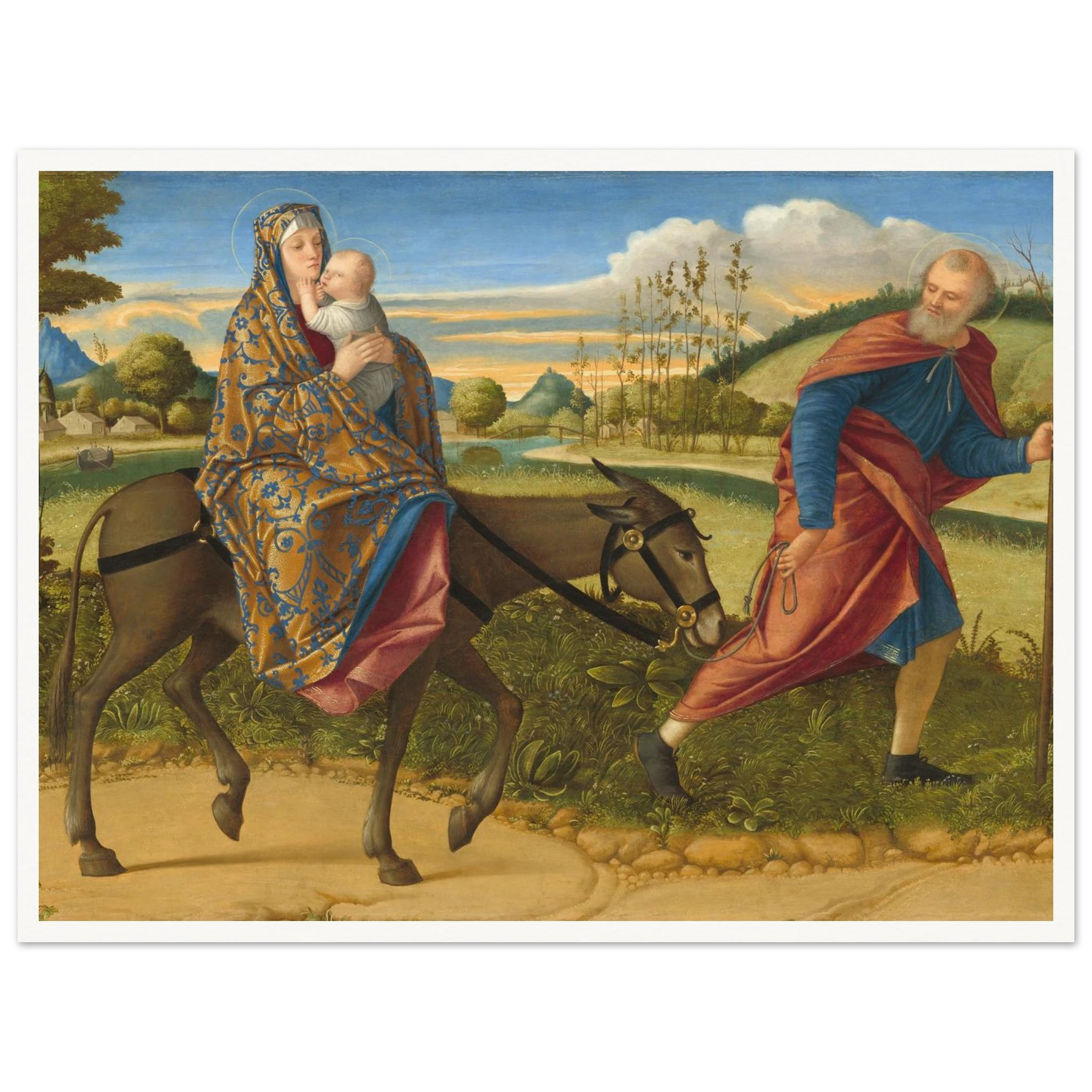 Pintada con maestría en 1515 por Vittore Carpaccio, "La huida a Egipto" es una exquisita pieza de arte renacentista. Esta cautivadora pintura representa la historia bíblica de María, José y el niño Jesús huyendo a Egipto. Es una representación magistral de este importante acontecimiento de la historia cristiana.