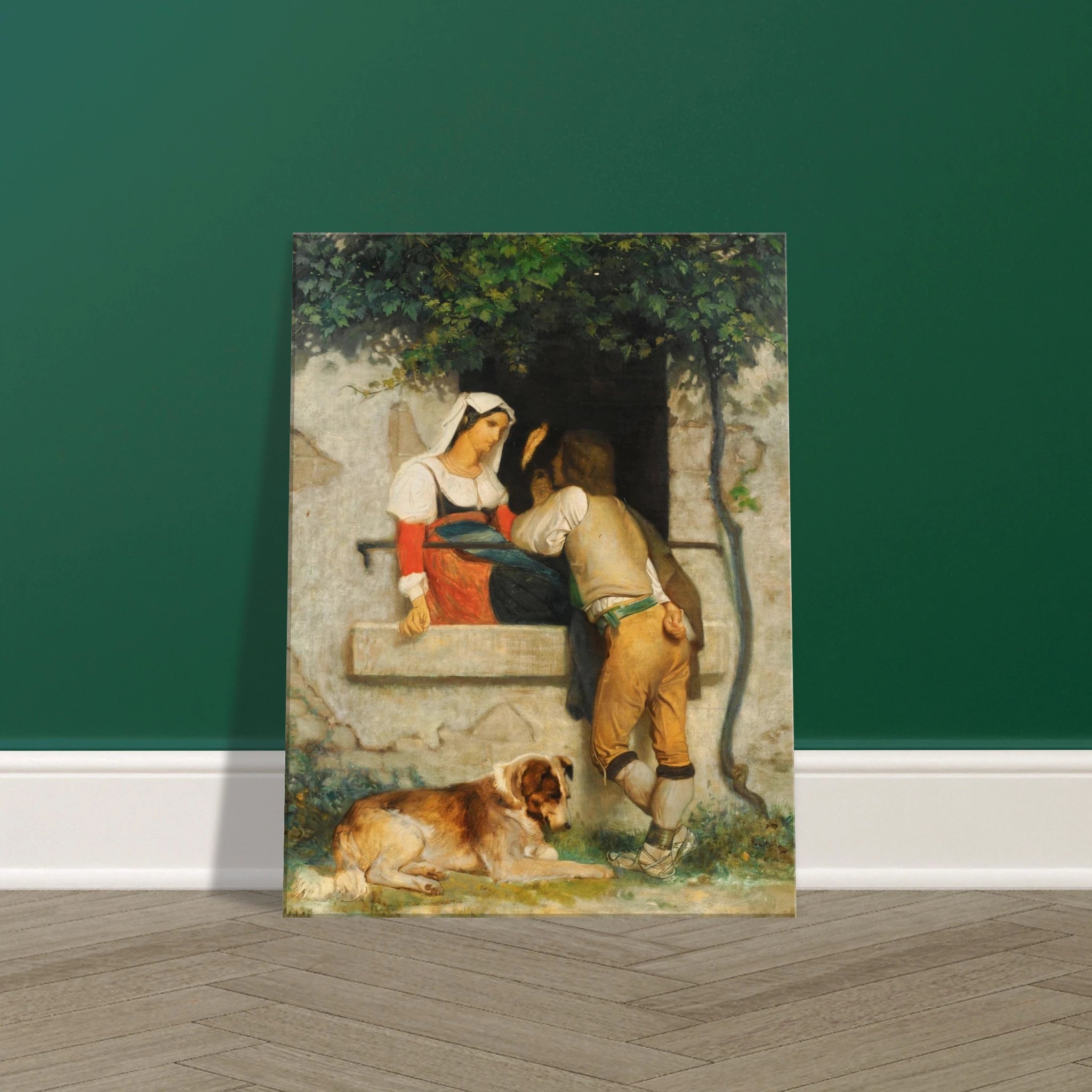 Adquiera una pieza de la historia del arte con esta impresionante pintura del siglo XIX de William Bouguereau. Esta obra maestra, que presenta "Amantes italianos", captura la belleza y la emoción de dos figuras en un abrazo amoroso. Perfecta para cualquier coleccionista de arte o amante de las pinturas clásicas.