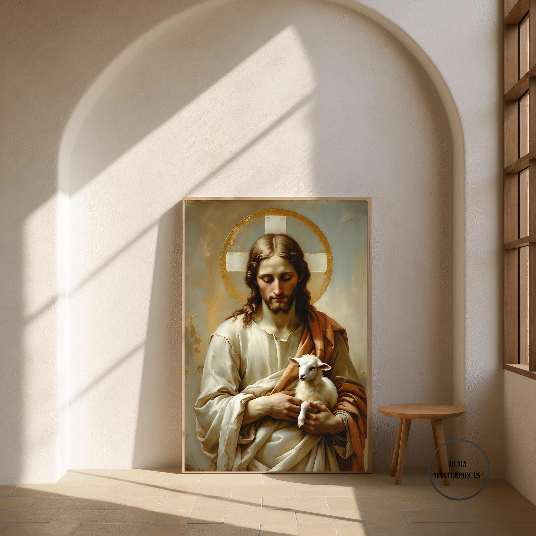 A peaceful Christian artwork for prayer corners, Catholic homes, chapels, and sacred interior spaces. Part of the Holy Masterpieces® collection.