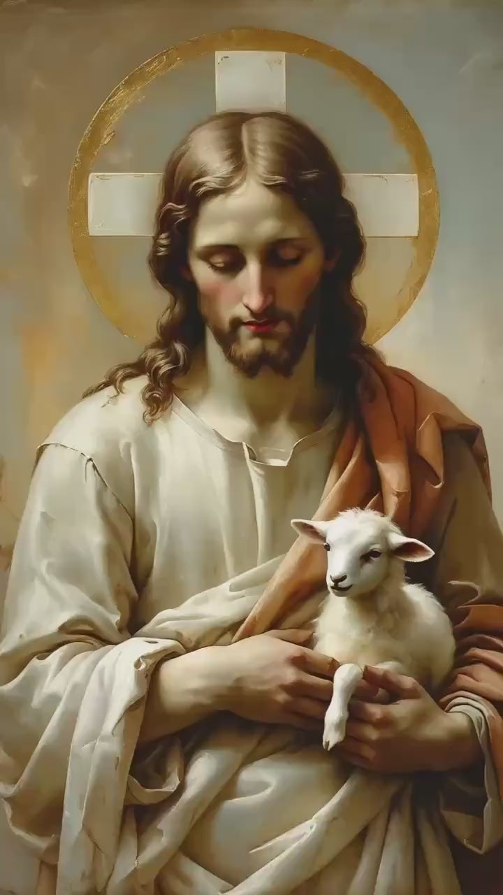 A quiet and reverent depiction of Christ as the Innocent Lamb, symbolising purity, sacrifice, and divine gentleness. This artwork reflects the Lamb of God not as narrative scene, but as sacred presence — evoking innocence, redemption, and silent offering.