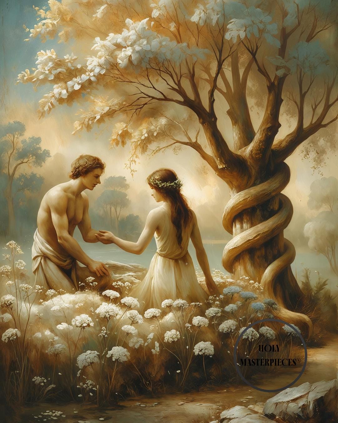 Adam and Eve in the Garden Print | Christian Art Wall Decor (Digital Download)