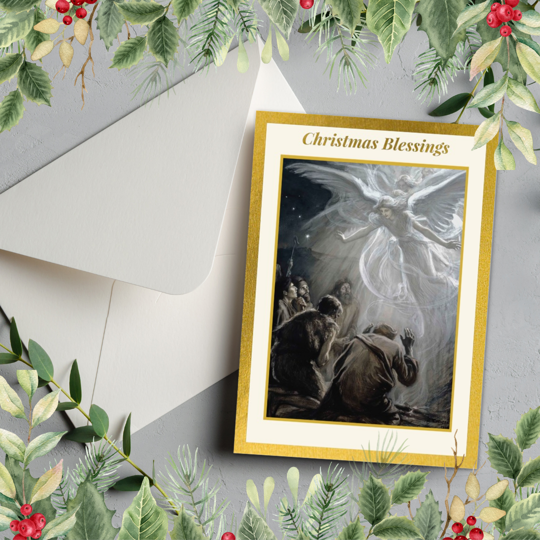 Christmas Cards – Revelation of Angels – Gold Foil Religious Card Set (Pack of 10)