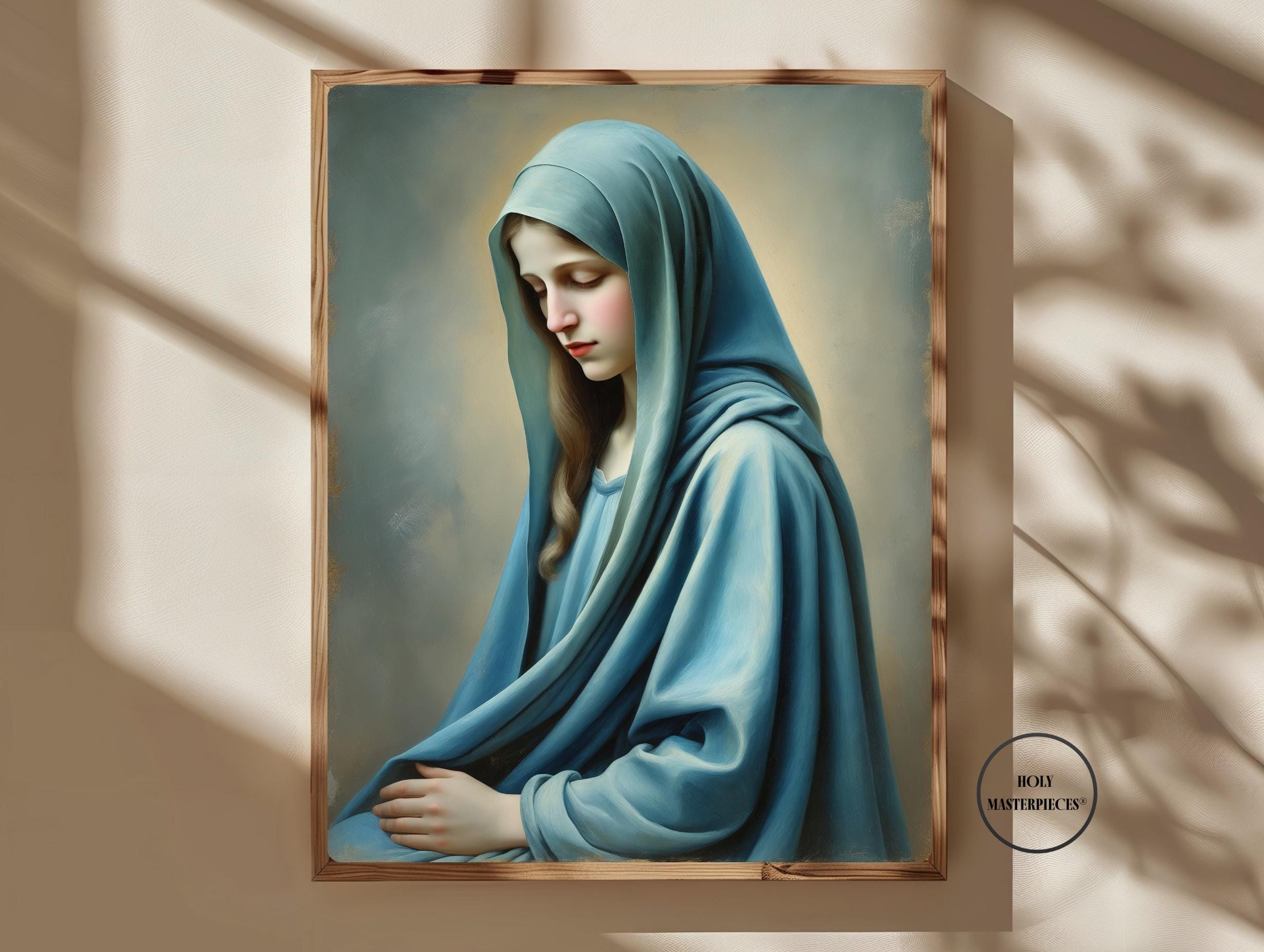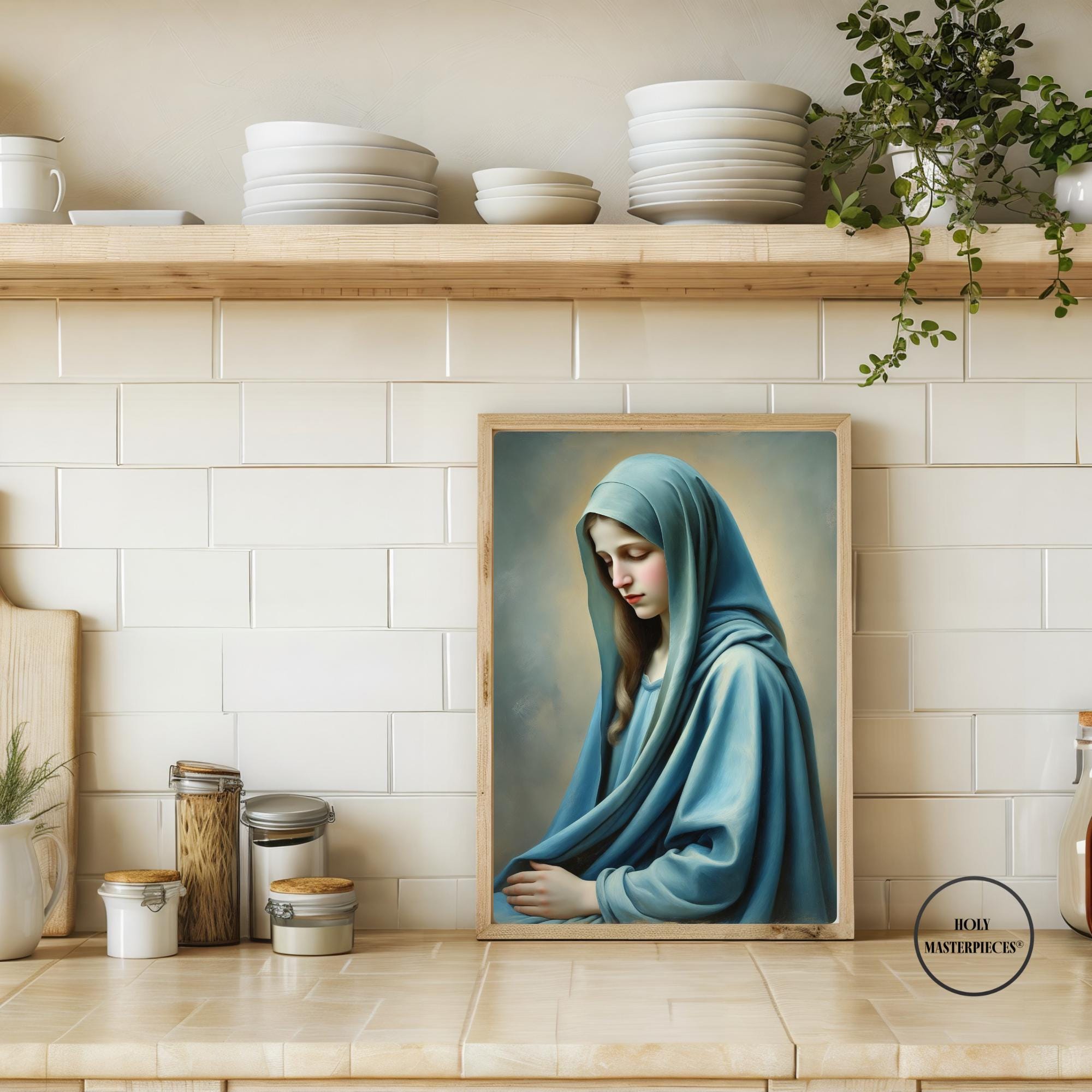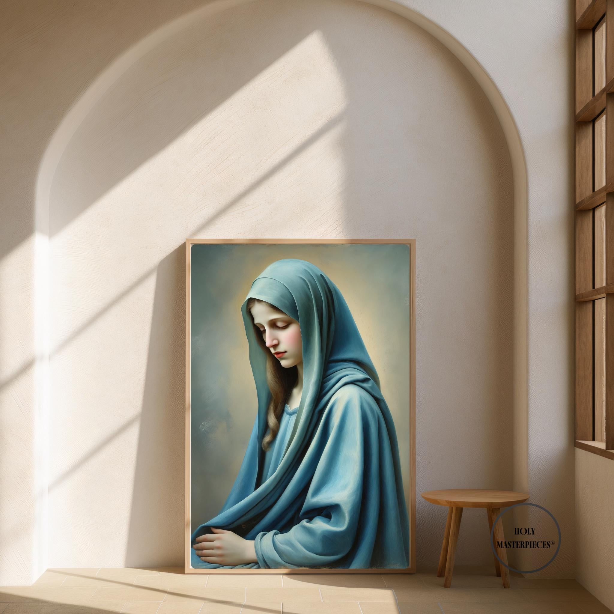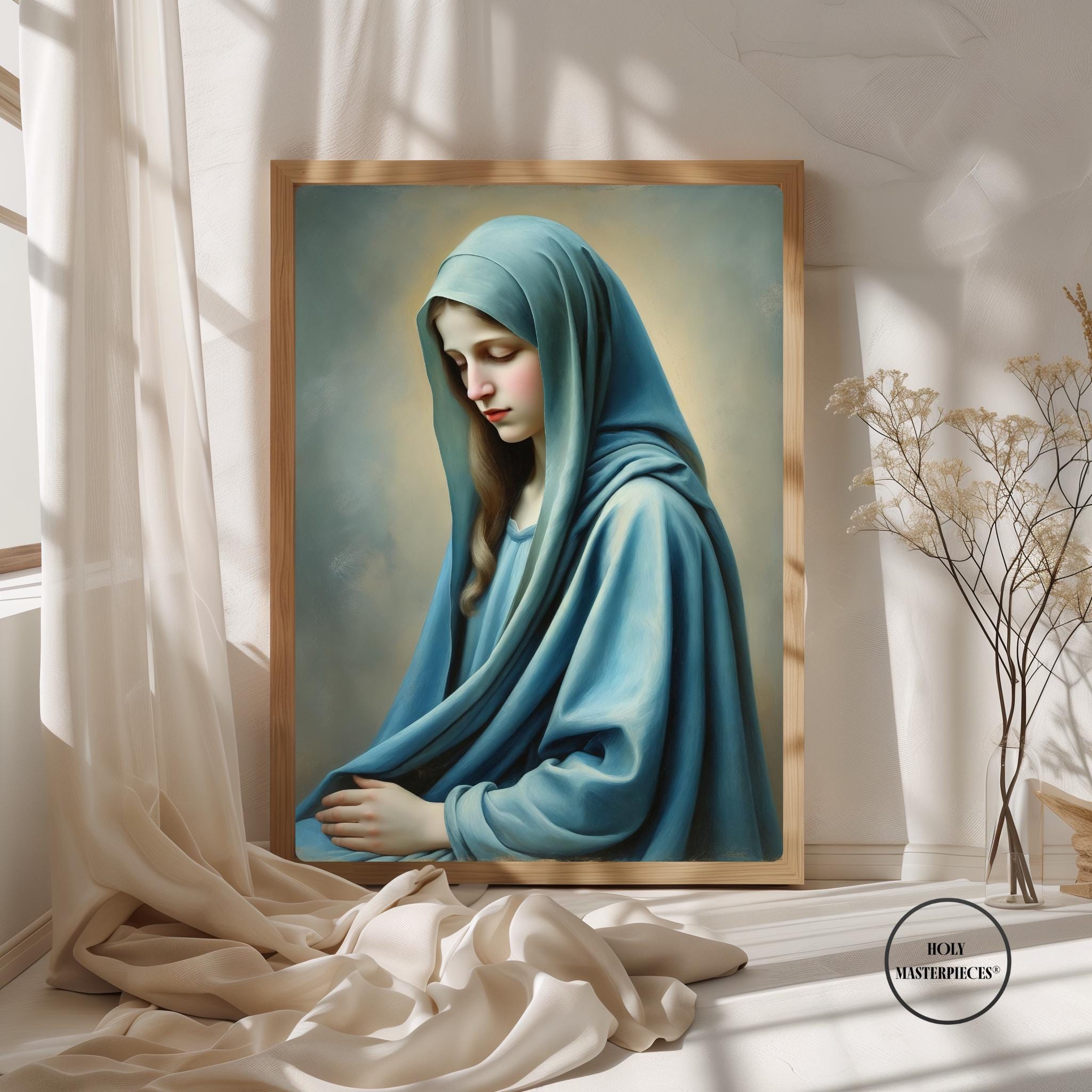 Virgin of the Aquamarine Veil Print - Christian Wall Art Digital Download